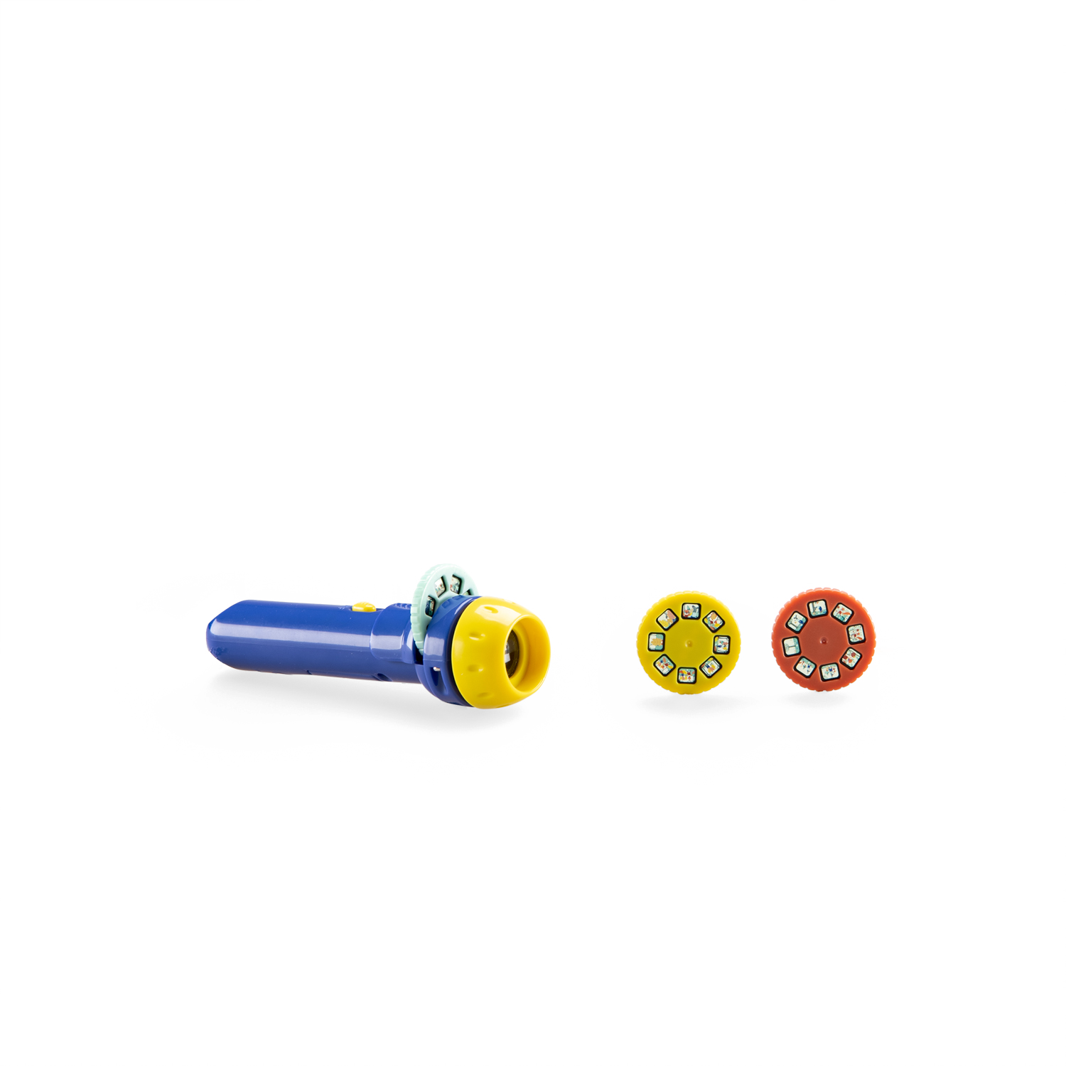 Lampe torche de poche où chacun des 3 disques projetés sur le mur raconte une histoire en couleur sans paroles des personnages de la collection Pomme des Bois. Un instant magique pour développer l'imagination des enfants.