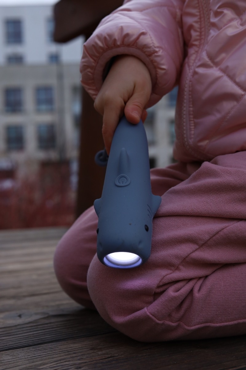 Partez en excursion avec la lampe de poche requin en silicone de chez Rabbit and Friends. En forme de requin et recouverte de silicone doux, elle est la combinaison parfaite entre fonctionnalité et amusement. Grâce au réglage pratique de la luminosité, elle est idéale pour les aventures du soir, les jeux d'ombres ou les histoires au coucher. Rechargeable via un câble USB-C, elle offre confort et de longues heures d'utilisation. Son crochet permet de la placer facilement là où elle est nécessaire.
