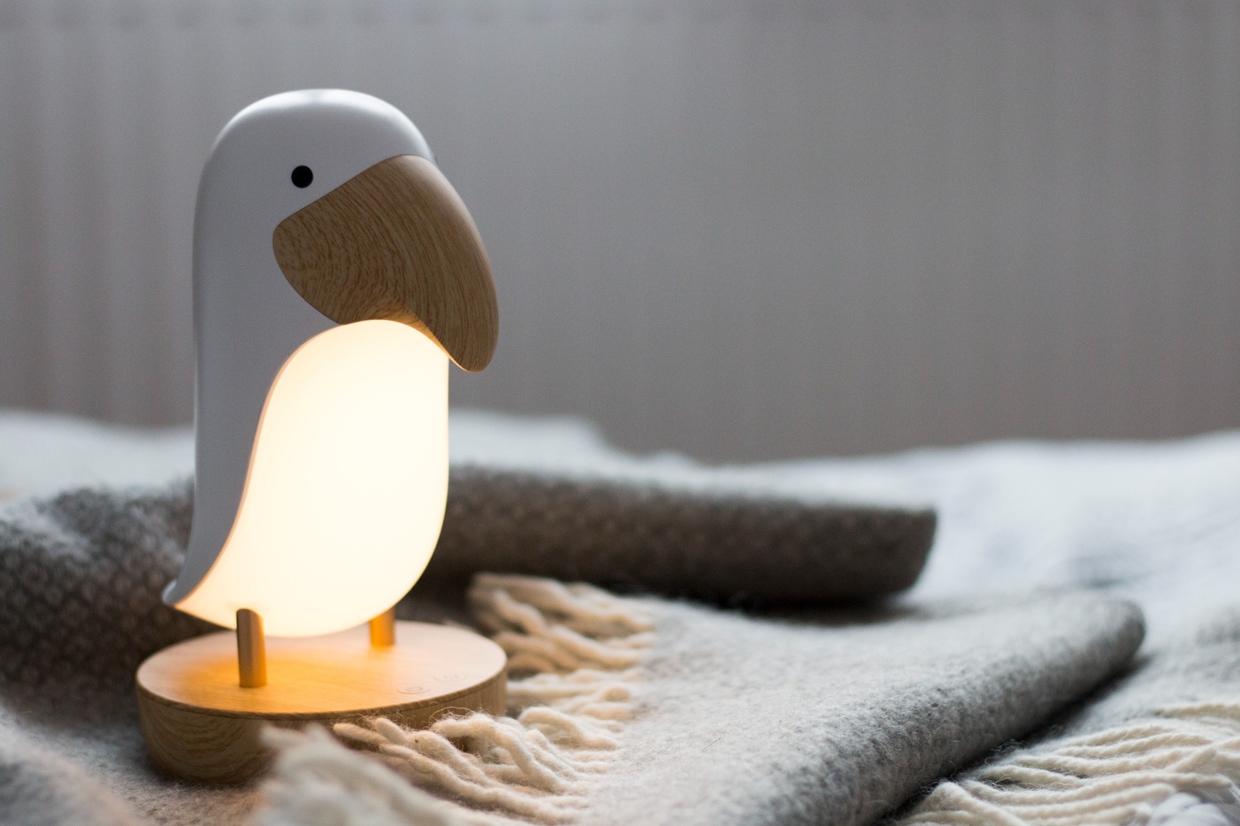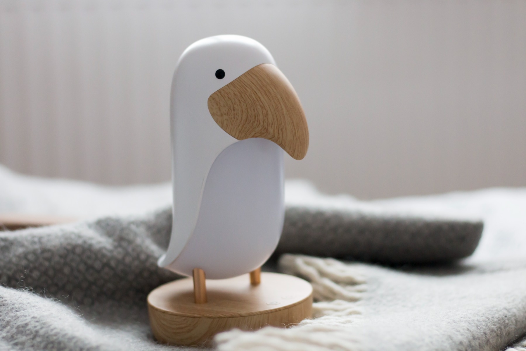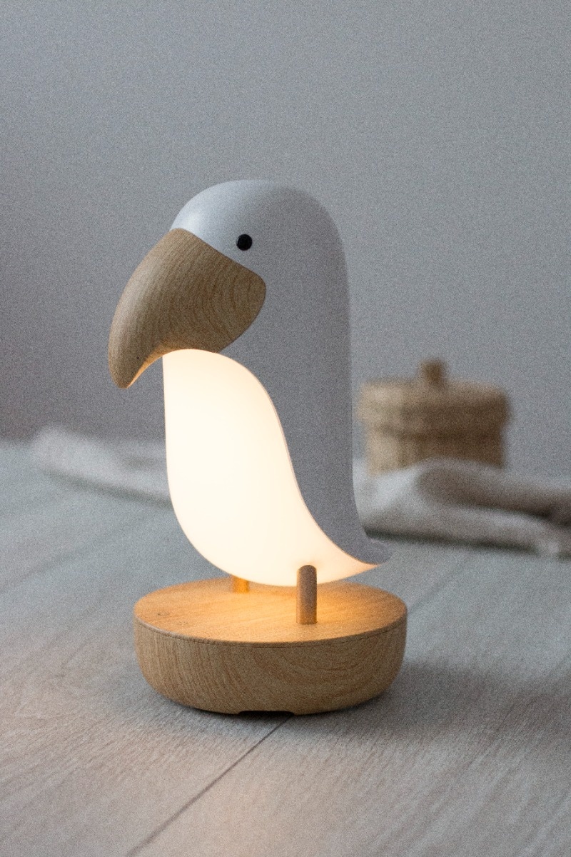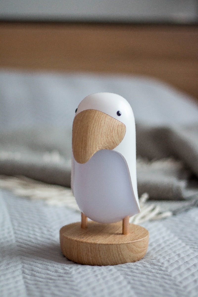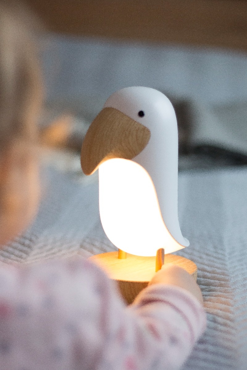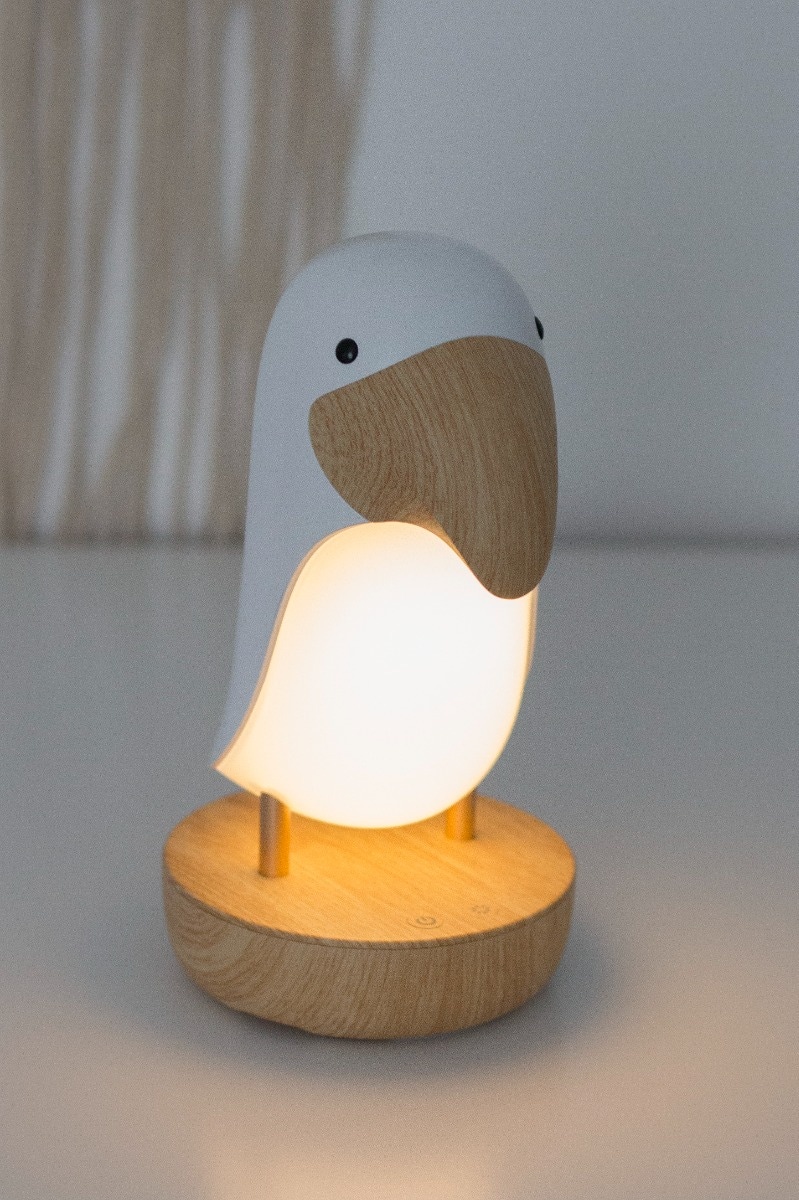 La lampe Oiseau Puffin de chez Rabbit and Friends est une veilleuse unique avec haut-parleur intégré. Elle est parfaite pour accompagner les jeux du soir, et provoque souvent un sourire sur le visage des enfants. Elle permet de lire des contes de fées avant de se coucher tout en offrant une présence apaisante et un sommeil paisible et sûr. La nuit, elle facilite la surveillance des enfants, le changement des couches et l'allaitement.