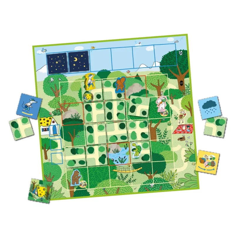 Facteur Souris est un jeu coopératif ! Vous allez devoir construire un chemin à l’aide de tuiles, afin de permettre au Facteur Souris de distribuer les invitations au pique-nique à ses amis de la forêt avant la nuit.