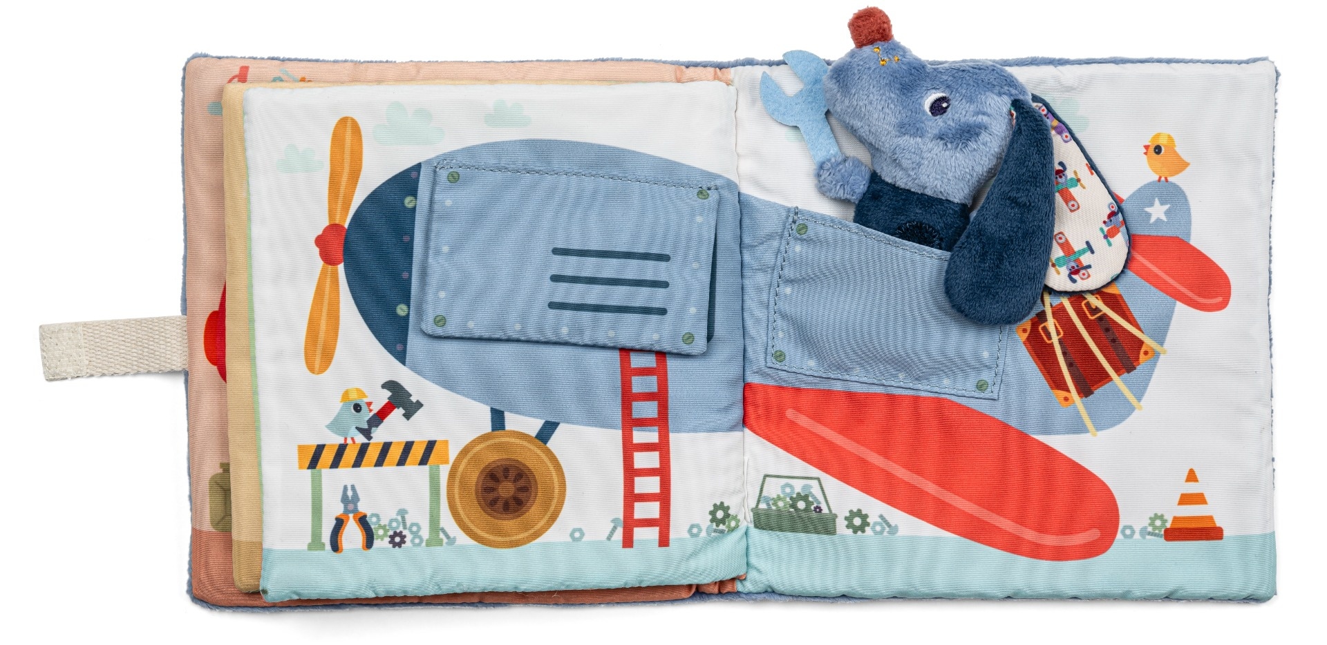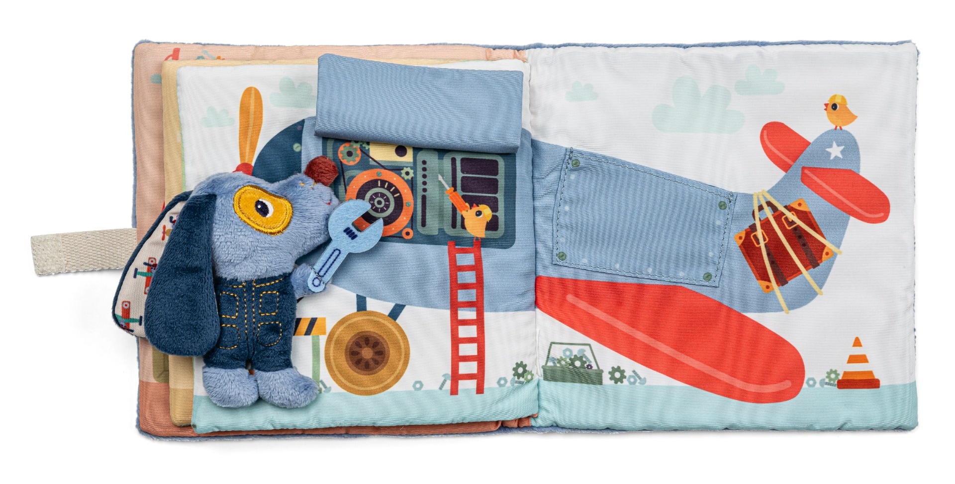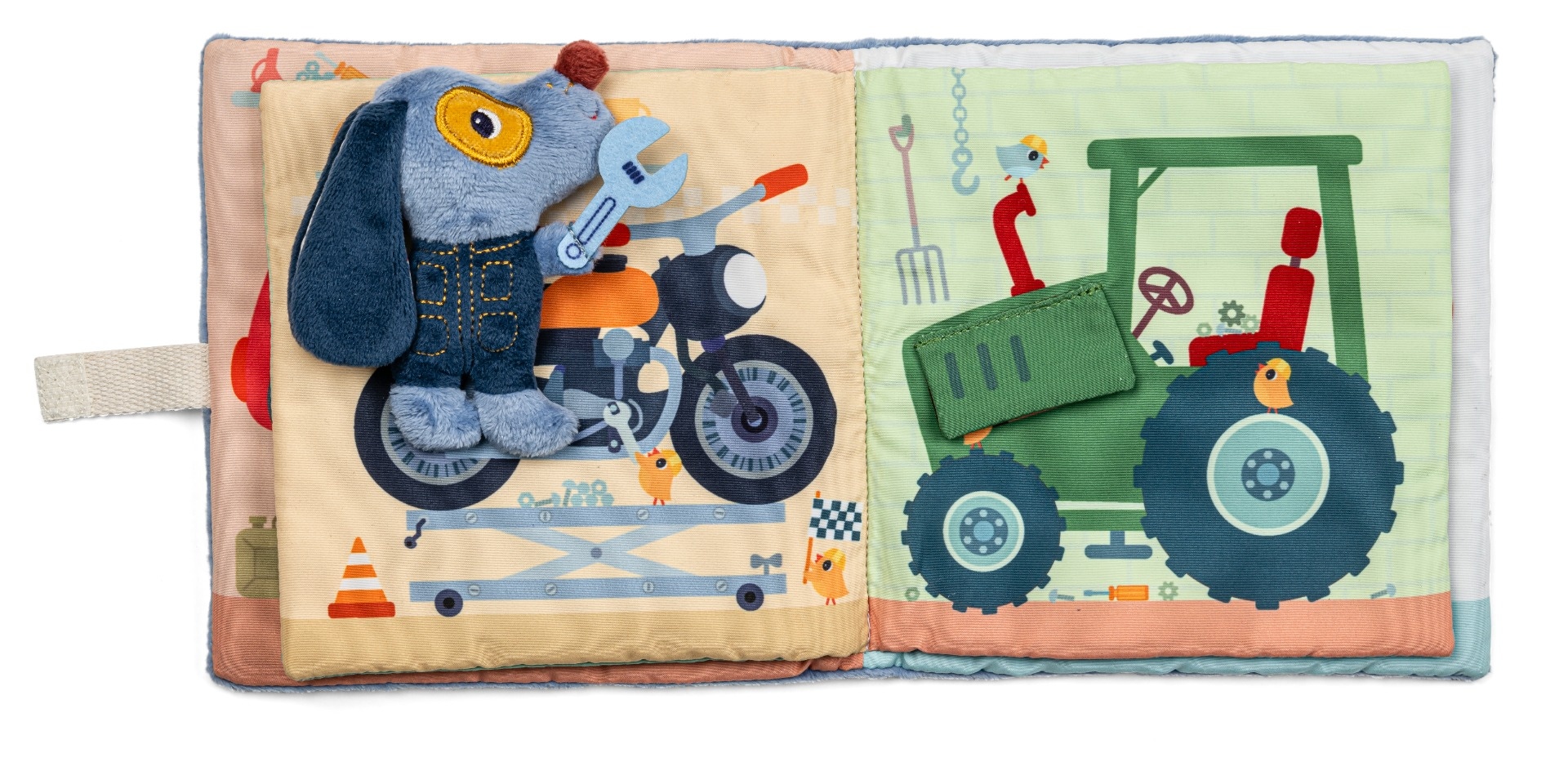 Découvrez ce qu'il se passe dans le livre d'activités le garage de Jules de Lilliputiens. Chaque page cache une activité et montre un moyen de transport. Une petite peluche Jules accompagne le lecteur au fil des pages et prend place à différents endroits dans le livre, rendant l'expérience encore plus interactive.
