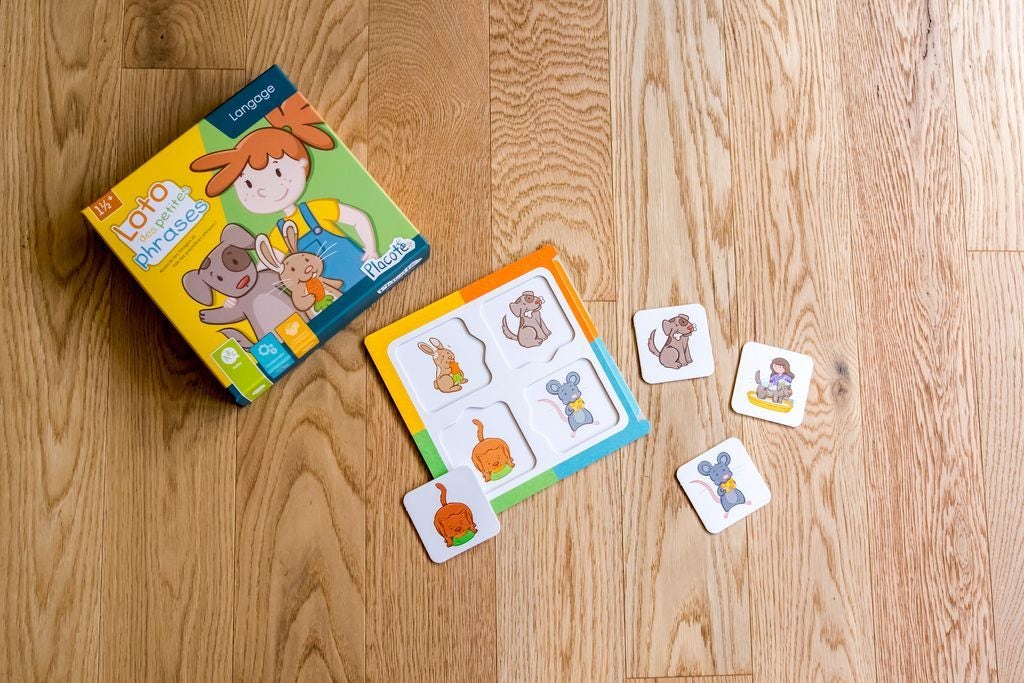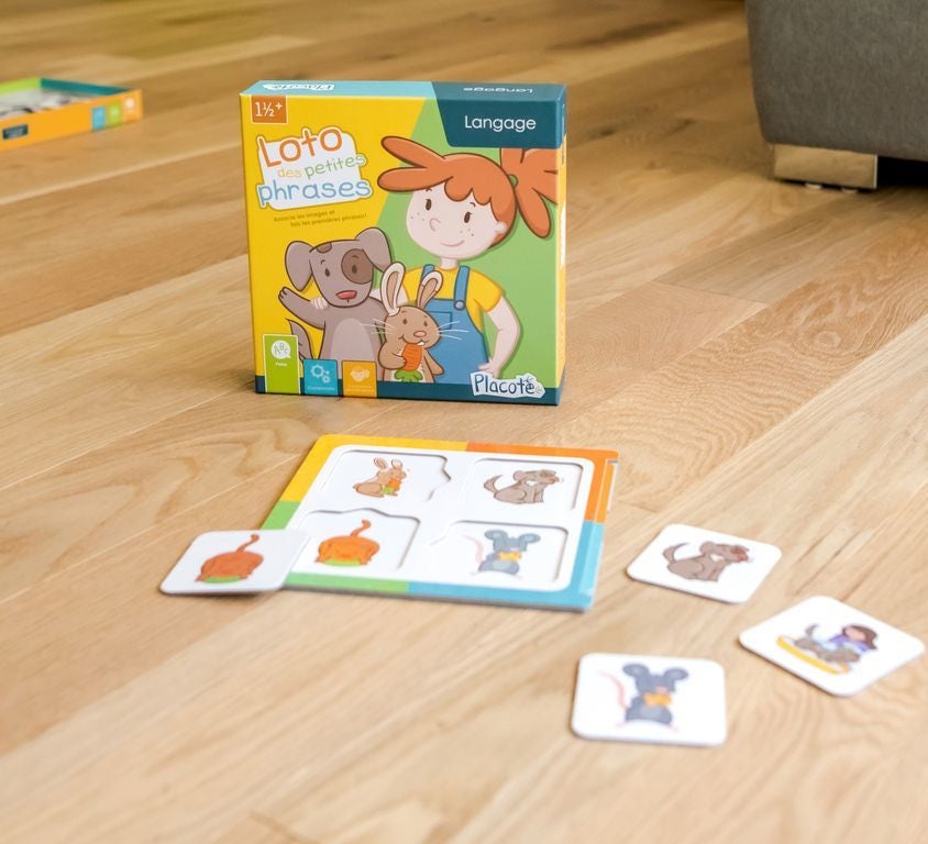 Le Loto des petites phrases de chez Blackrock Games est un jeu éducatif pour les enfants à partir de 18 mois. Ce jeu est un loto conçu spécialement pour aider les enfants à faire leurs premières combinaisons de mots. À travers ce jeu amusant et interactif, les enfants sont invités à associer des images ou des cartes représentant des mots tels que des noms (objets, animaux, personnes) et des verbes (actions). Le but du jeu étant de remplir sa carte de loto en trouvant les bonnes associations de mots.