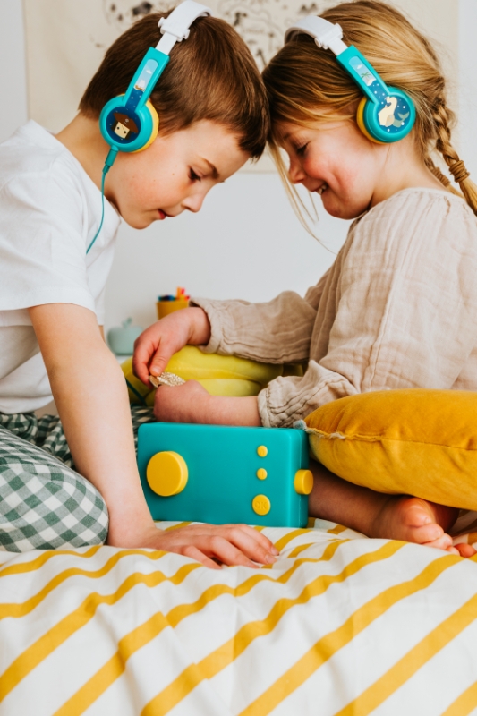 Accessoire pratique, moderne et confortable, le casque Octave de Lunii permet de profiter pleinement de Ma Fabrique à Histoires dans les salles d'attente ou bien en voyage. Grâce à lui, votre enfant pourra dès l'âge de 3 ans s'amuser en toute sérénité et sécurité en s'inventant un tas d'histoires extraordinaires. Sans ondes et avec un volume limité à 85 dB, ce casque bleu et jaune est doté de coussinets moelleux pour un confort optimal. Il dispose d'une double prise jack pour une expérience d'écoute à deux ainsi que d'un cordon détachable. Ce casque ultra résistant est également pliable pour faciliter le rangement et ajustable à la tête de votre bambin. A glisser dans votre sac lors d'un voyage, ce casque Octave permettra à votre enfant de s'évader dans un monde imaginaire qu'il aura lui-même créé. Lunii est une start-up française à l'origine d'un boîtier à histoires 100% innovant alliant éveil et curiosité, qui permet à votre enfant de développer son imaginaire tout en s'amusant, tout cela loin des écrans ou autres supports visuels et sans ondes.