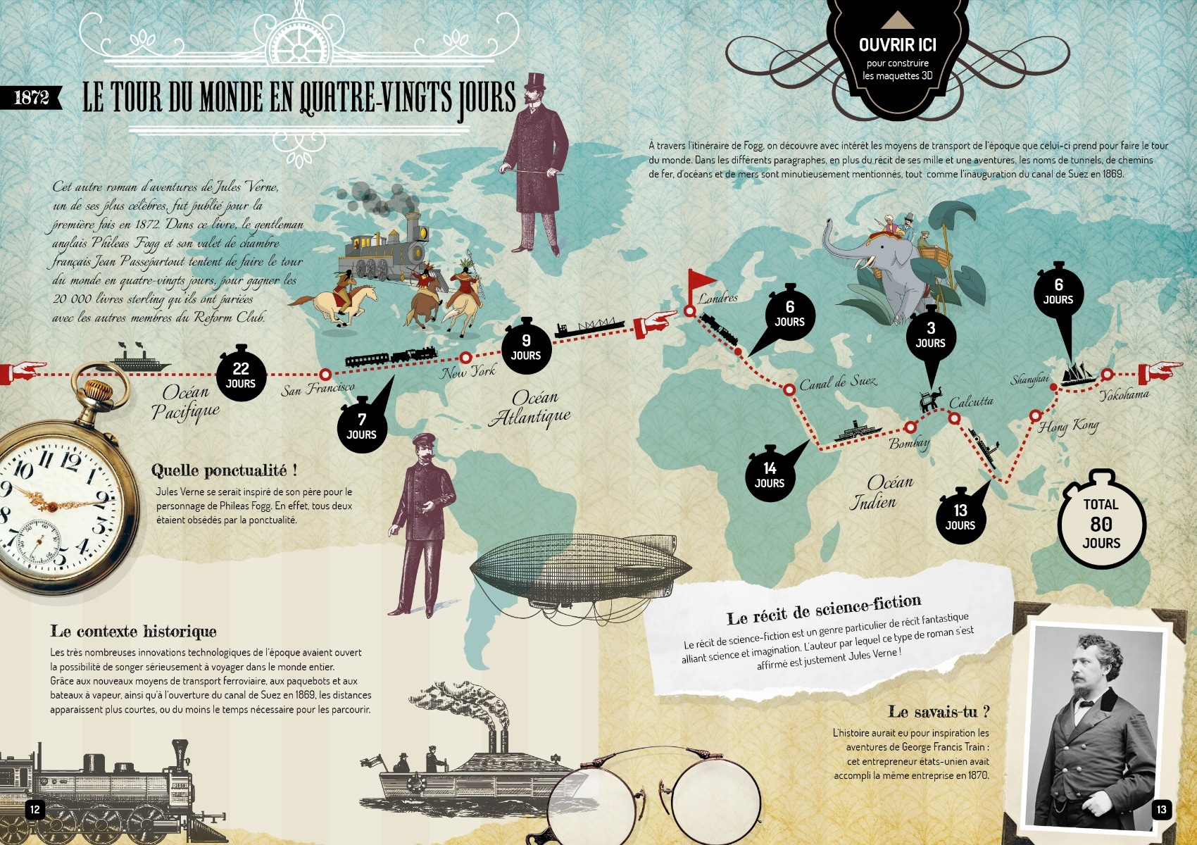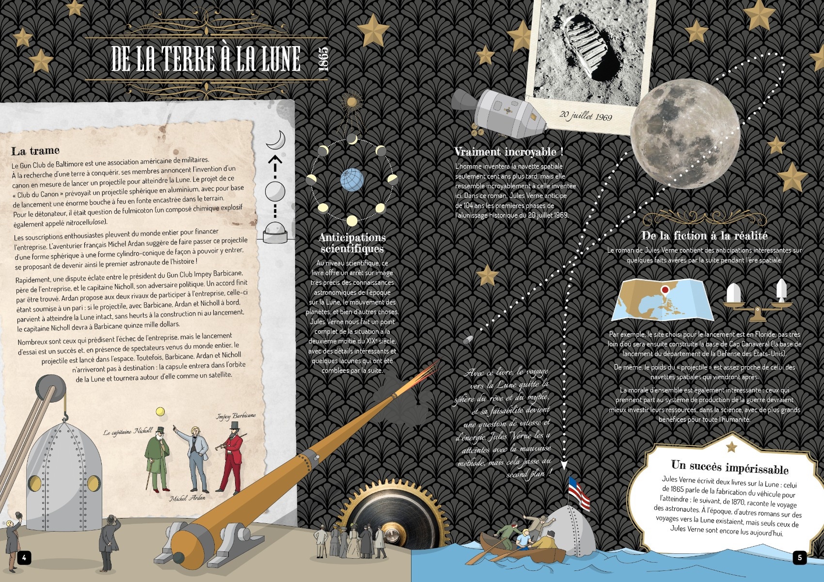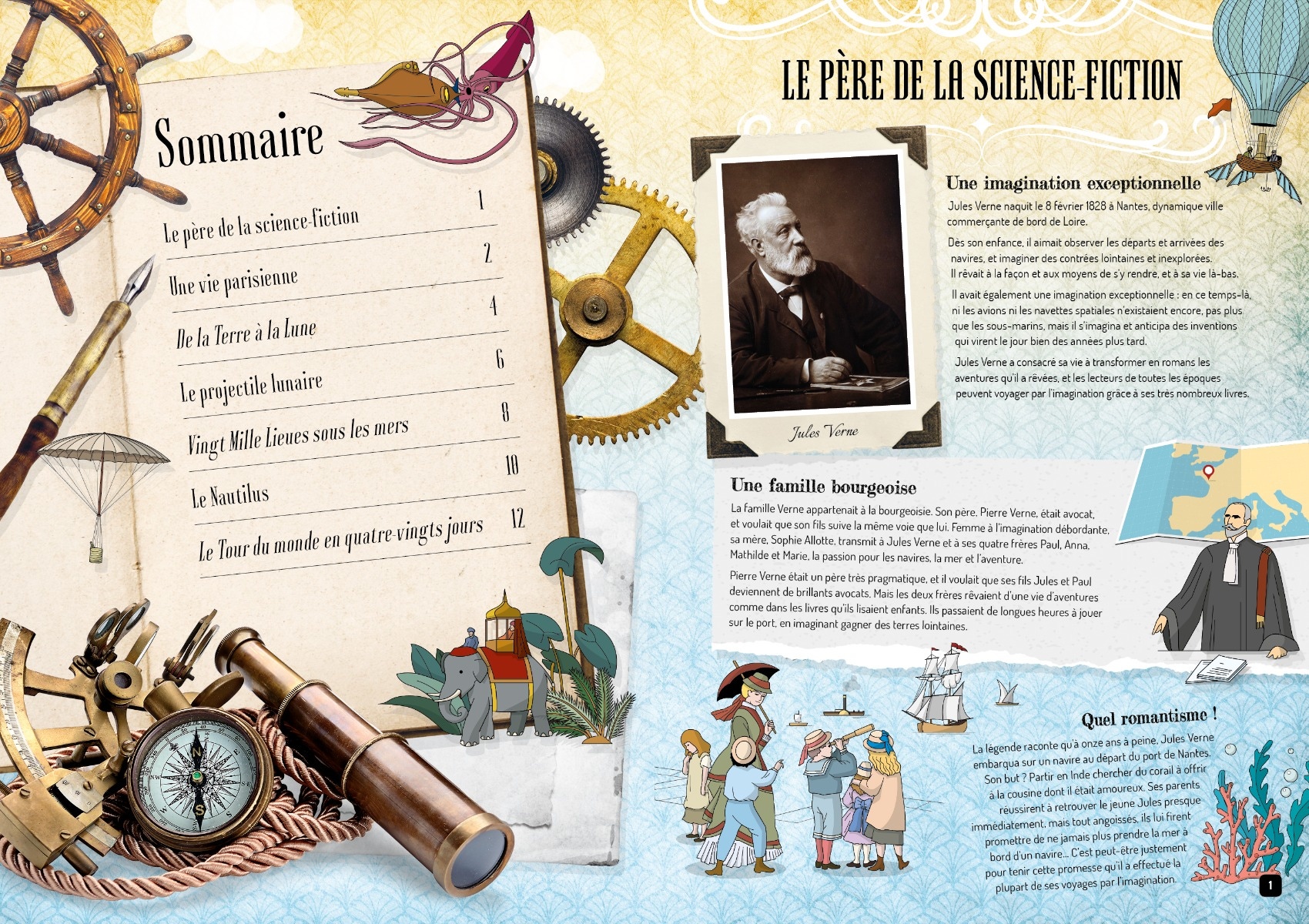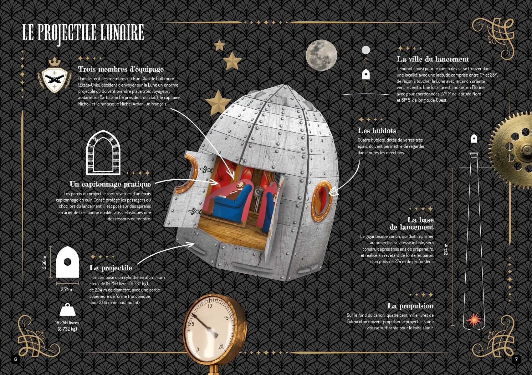 Lis ce livre pour découvrir plein d’anecdotes et amuse-toi à monter les maquettes miniatures du projectile lunaire et du Nautilus,