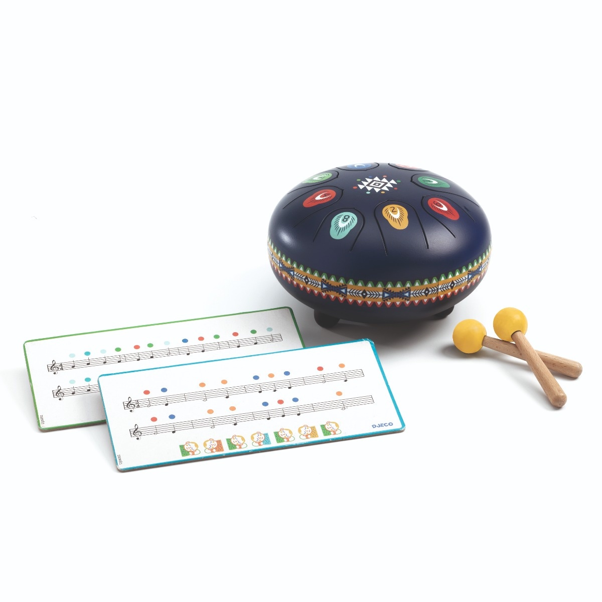 Le métal drum est un magnifique tambour à languettes en acier joliment illustré sur le thème amérindien. Cet instrument de musique à percussion a 8 languettes correspondant à 8 notes de musique. Très intuitif et facile à jouer, l’enfant tape sur les languettes avec les baguettes : par ses vibrations, l’instrument émet un son doux et relaxant. Parfait pour créer ou reproduire de mélodies apaisantes ! Le cadeau idéal pour les petits musiciens à partir de 5 ans.