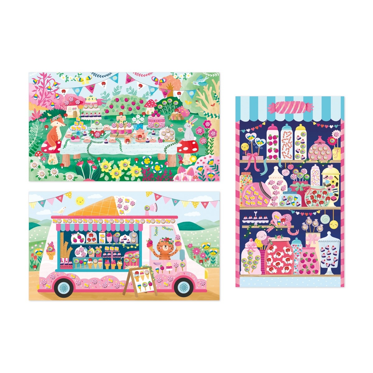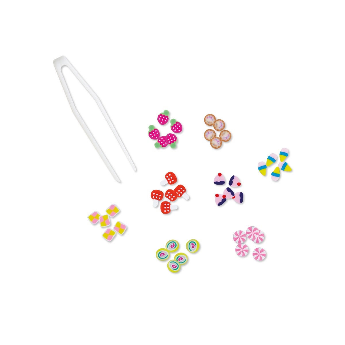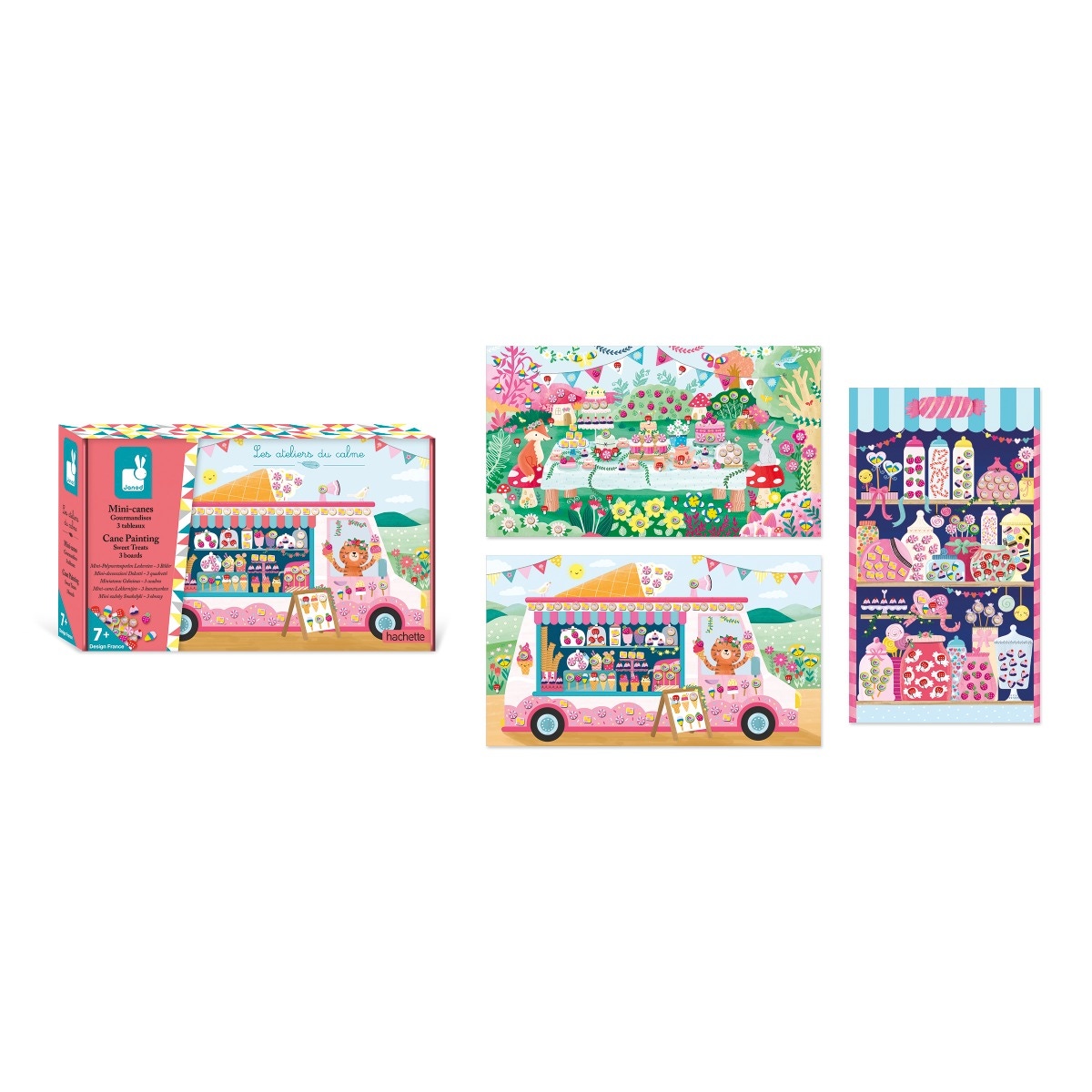 Les gourmands vont se régaler ! Ce coffret créatif permet de réaliser 3 tableaux à décorer avec 370 mini-canes de 8 modèles différents sur la thématique gourmandise. Il contient 3 tableaux autocollants, 370 mini-canes en pâte polymère et 1 pince. Les instructions et les modèles sont imprimés à l'intérieur de la boîte. Cette activité permet de développer sa patience et sa dextérité et nécessite environ 15 minutes par tableau. Elle est idéale pour les enfants à partir de 7 ans.