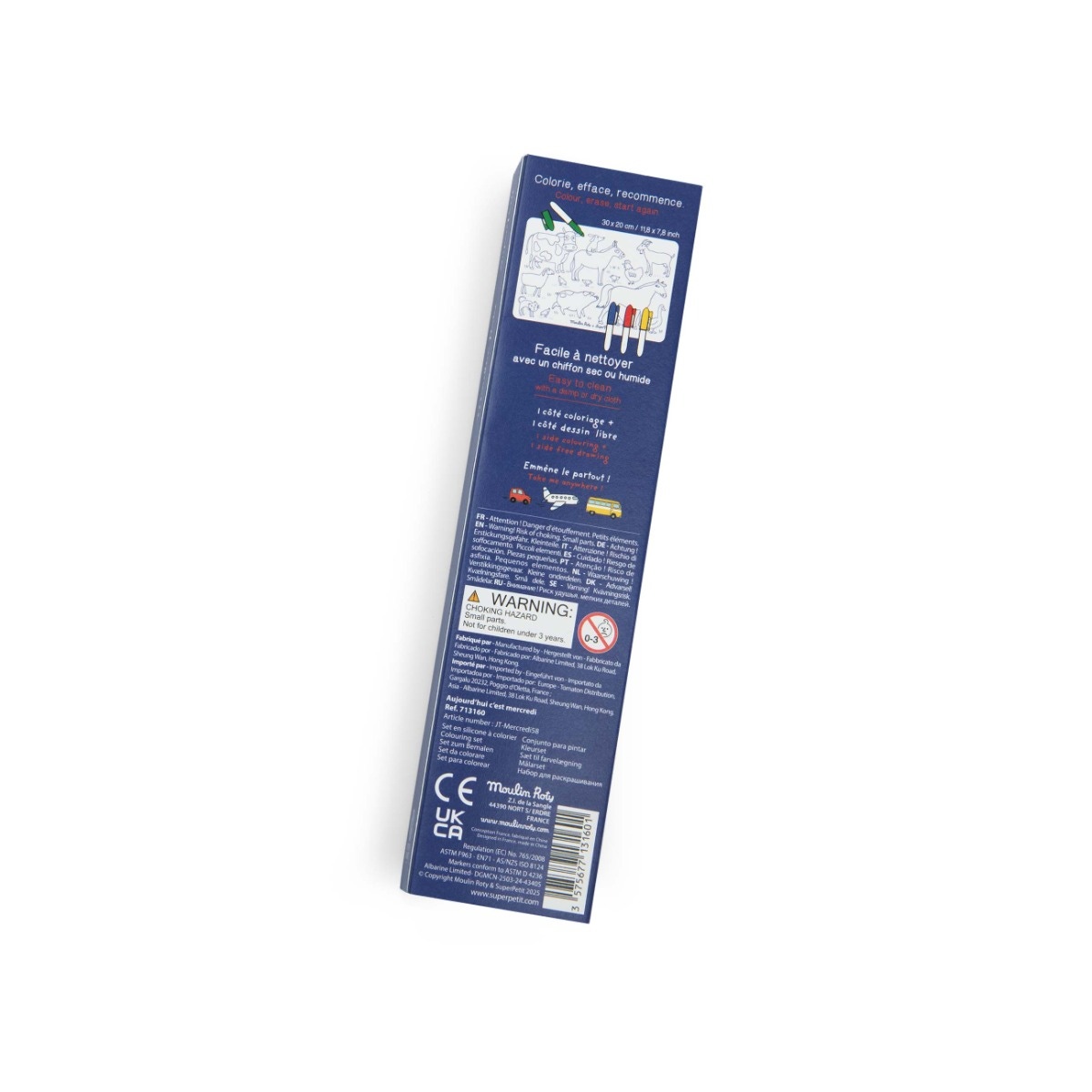 Colorie, efface, puis recommence à l’infini grâce à ses 4 feutres magiques. D’un côté, donne vie aux illustrations colorées d’Aujourd’hui c’est mercredi de Moulin Roty, et de l’autre, laisse libre cours à ton imagination pour dessiner tout ce que tu veux. Ultra pratique, ce mini set est léger, facile à transporter partout et simple à nettoyer : parfait pour les artistes en herbe dès 3 ans !