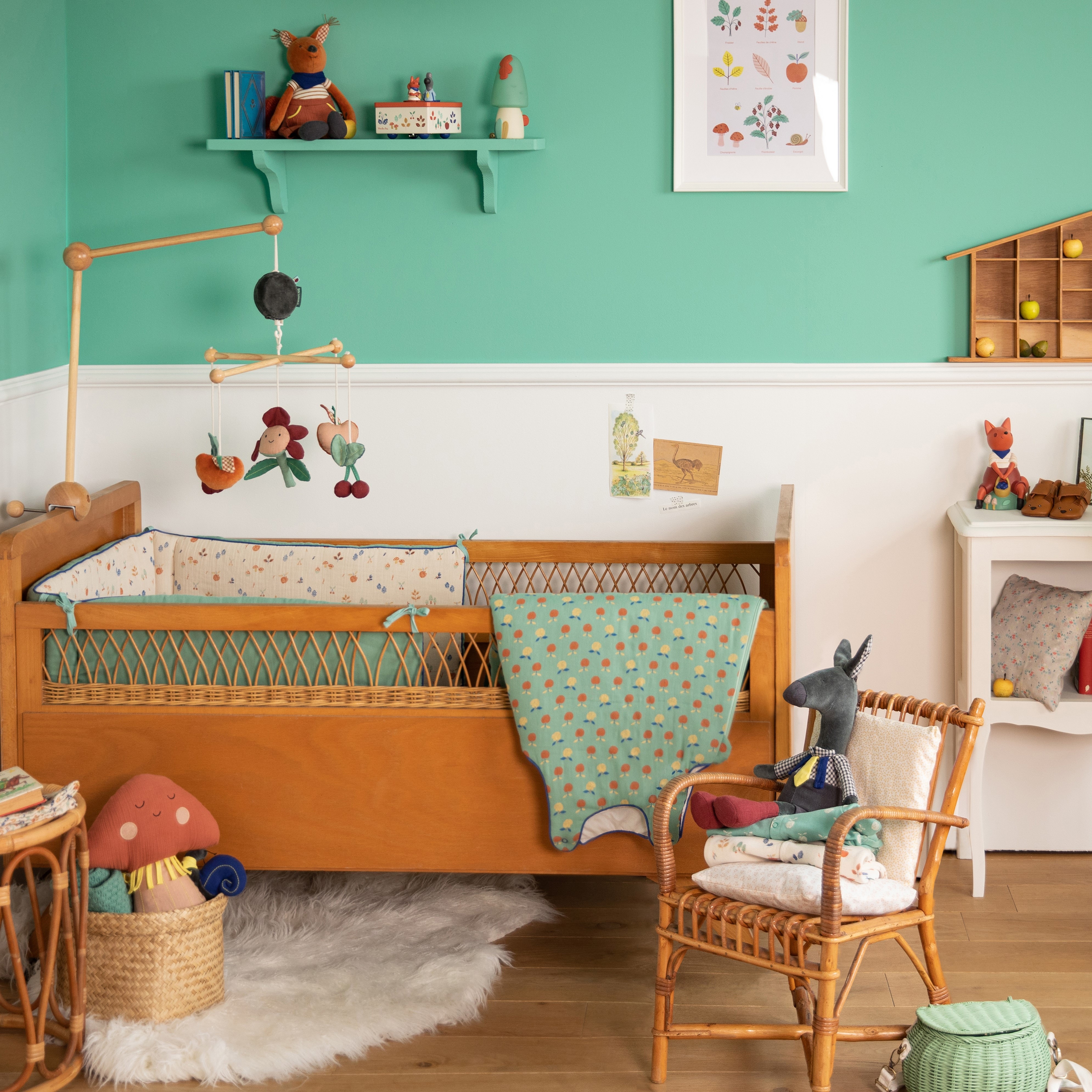 Cerises, fleurs et pommes des bois… que de petits trésors colorés à observer et une jolie mélodie à écouter pour l'heure du coucher. Empli de douceur, ce mobile en bois, certifié OEKO-TEX®, offrira un adorable spectacle avant de rejoindre le pays des rêves