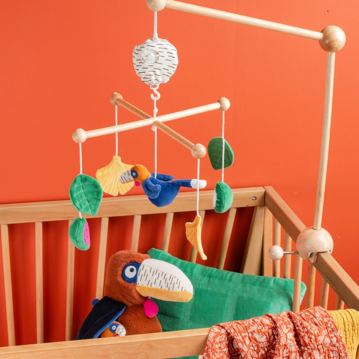 Entre feuillages, fruits colorés et Litchi le calao malicieux, ce mobile transforme le moment du coucher en un doux voyage au cœur de la forêt. Conçu en bois de qualité et orné de couleurs vives, il capte l’attention de bébé tout en apportant une touche poétique à la chambre. Sa mélodie apaisante aide votre enfant à s’endormir sereinement, tandis que son design élégant s’intègre parfaitement à tout décor. Un incontournable pour éveiller les sens et offrir des nuits douces aux tout-petits.