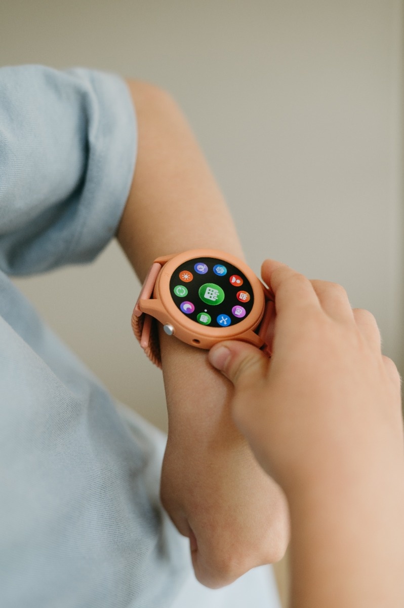 Montre connectée. Applications variées : sommeil, fréquence cardiaque, chronomètre, météo, calculatrice… PAS DE JEUX. Lampe de torche sur le côté