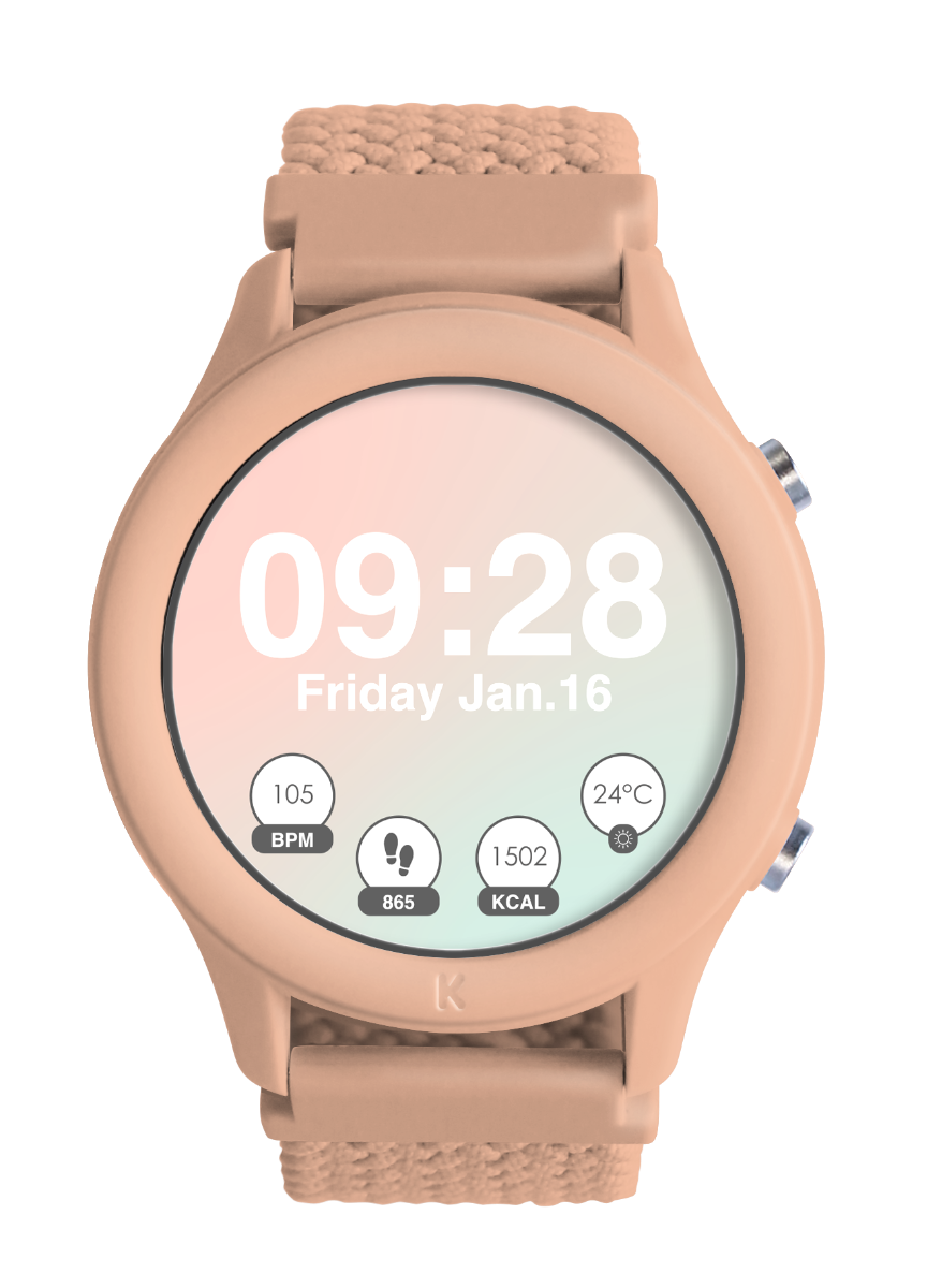 Connexion bluetooth avec le téléphone sans accès à la carte puce. Bracelet tissus tressés et attache métallique magnétique. Batterie rechargeable (Autonomie 5 jours).