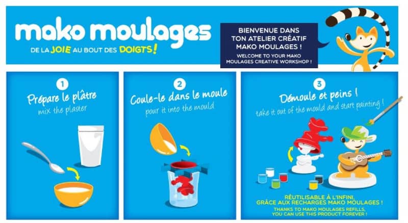 | Contenu du produit | 1 moule en latex 1 sachet de 80g de plâtre 4 pots de peinture acrylique de 2 5 ml (blanc jaune noir et vert) 4 croisillons 1 pinceau et 1 notice de jeu |