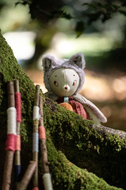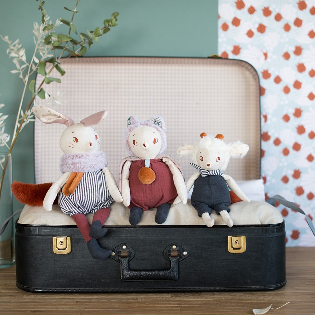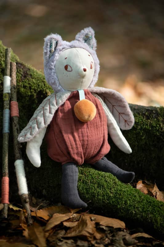 Partons à la rencontre de Giboulée, adorable petit chat issu de la toute nouvelle collection Après la Pluie de Moulin Roty, imaginée par Lucille Michieli. A la fois tendre et poétique, cette gamme nous emmène faire la rencontre de jolies petites peluches aux grands yeux, tout droit sorties de leurs sous-bois et prêtes à se faufiler sous les draps ou dans les tiroirs. Découvrez Giboulée, jolie peluche de 30 cm représentant un chat tout mignon au look super tendance . Elle accompagnera votre enfant pour de tendres moments câlins et le réconfortera avant d'aller se coucher. Giboulée porte une salopette en tissu lange coton bio prune ainsi qu'un grelot autour du cou. Ses épaules sont délicatement recouvertes par deux feuilles en tissu chambray gris et polaire rose. Bébé appréciera le toucher tout doux de la fourrure parme présente sur la tête de ce charmant doudou. Un premier compagnon idéal pour votre petit qui lui apportera douceur et rêverie. Idée cadeau de naissance original. Matière(s) : Lange coton bio, polyester. Pas de sèche-linge. Dès la naissance.