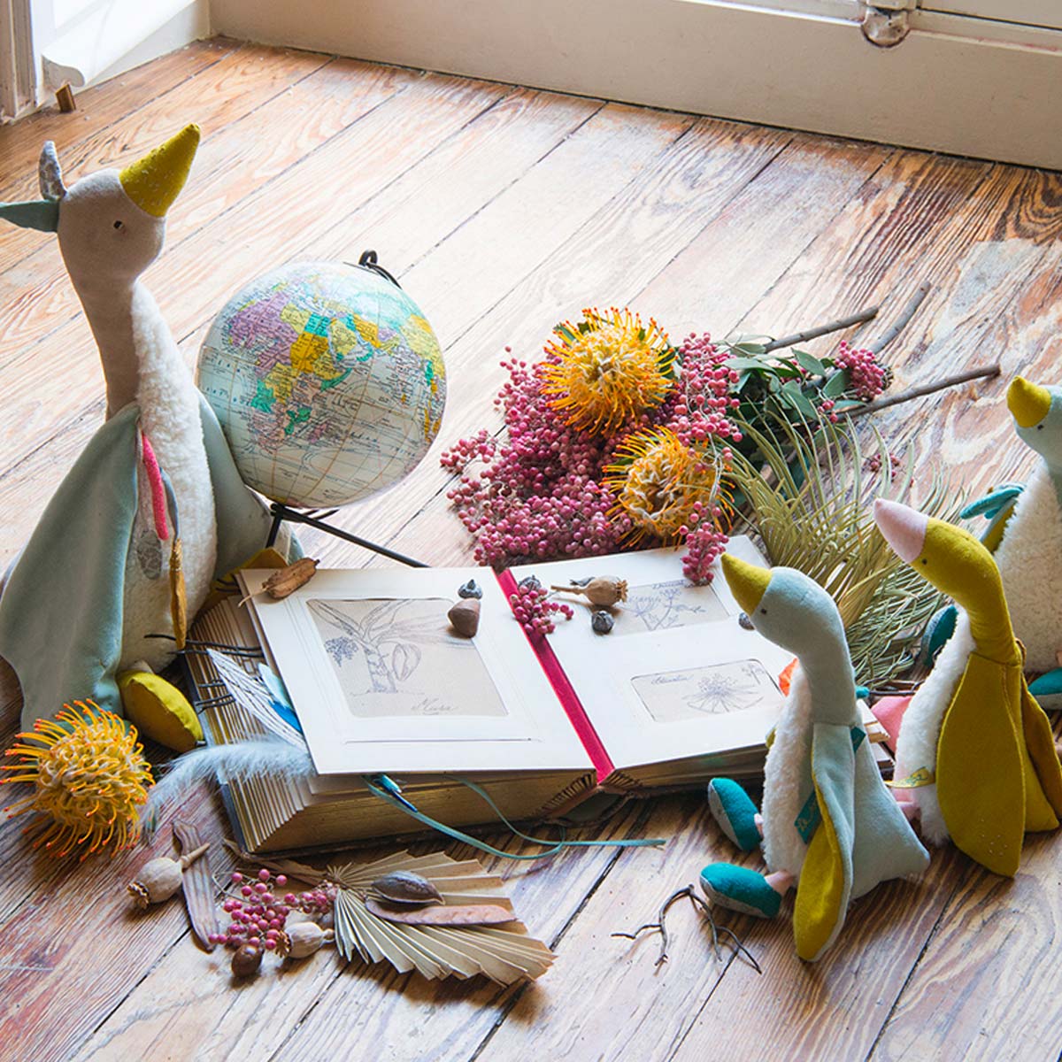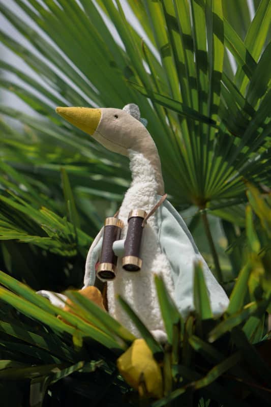Le Voyage d'Olga est une collection composée de délicates peluches aux matières douces et agrémentées de broderies. Découvrez Olga, la maman oie : cette majestueuse oie sauvage au doux plumage blanc et taupe avec des grandes ailes en velours bleu et brodé. Elle porte à son cou, des plumes, comme des grigris porte-bonheur à offrir lors de ses voyages. Cette peluche plaira aux petits voyageurs et voyageuses. .