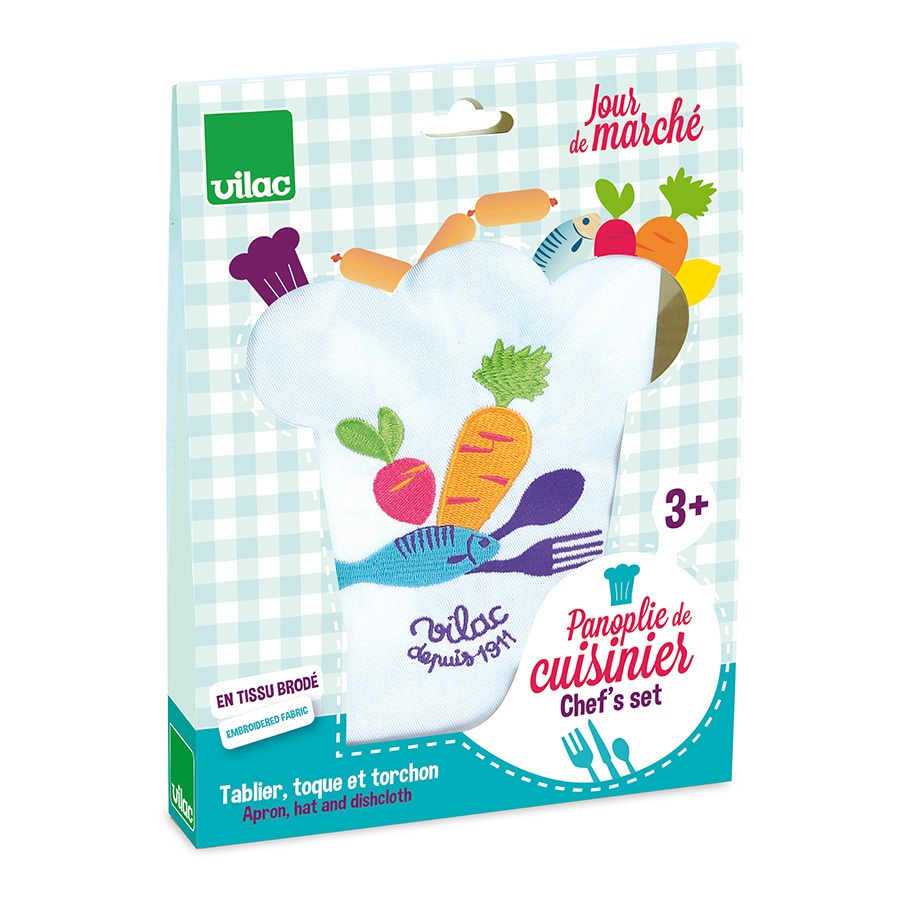 Un torchon,un tablier, et une toque, les accessoires indispensables pour devenir un vrai petit marmiton !