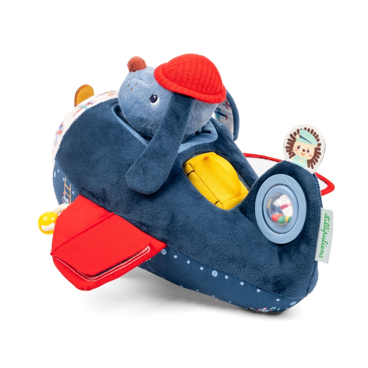 Avec la peluche d'activités Jules en forme d'avion de chez Lilliputiens, votre enfant est prêt à décoller vers de grandes découvertes ! Dès 9 mois, bébé est invité à découvrir les différents sons et manipulations qui éveillent les sens du touché et de l'ouïe. Hochet, papier crissant, éléments à attraper.. Chaque détail stimule la curiosité et la motricité fine.