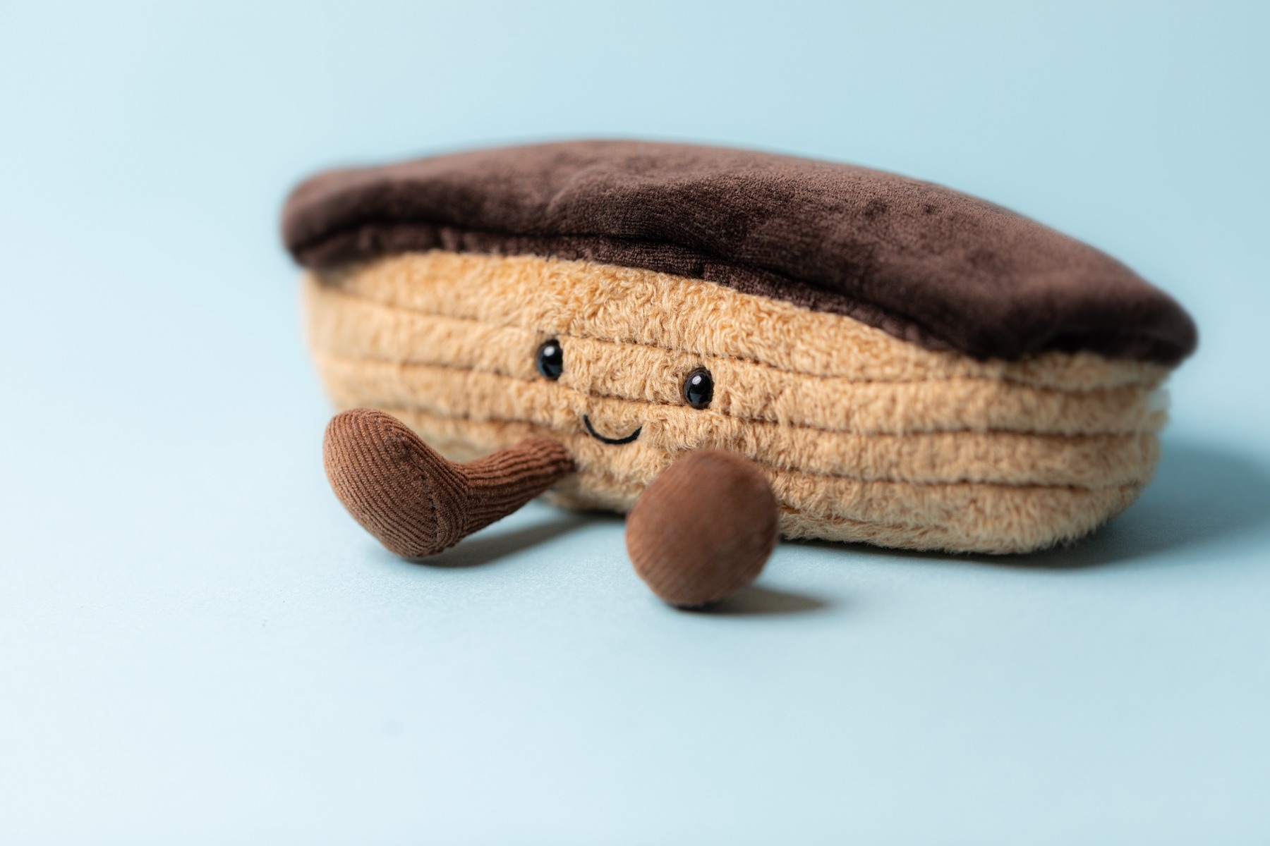 Une magnifique peluche Eclair de chez Jellycat. Cette peluche originale et rigolote, qui vous réserve de grands moments de tendresse et d'affection. Avec son délicieux glaçage au chocolat, son sourire aux lèvres et ses pattes remuantes, cette pâtisserie cherche un compagnon pour vivre de belles aventures.