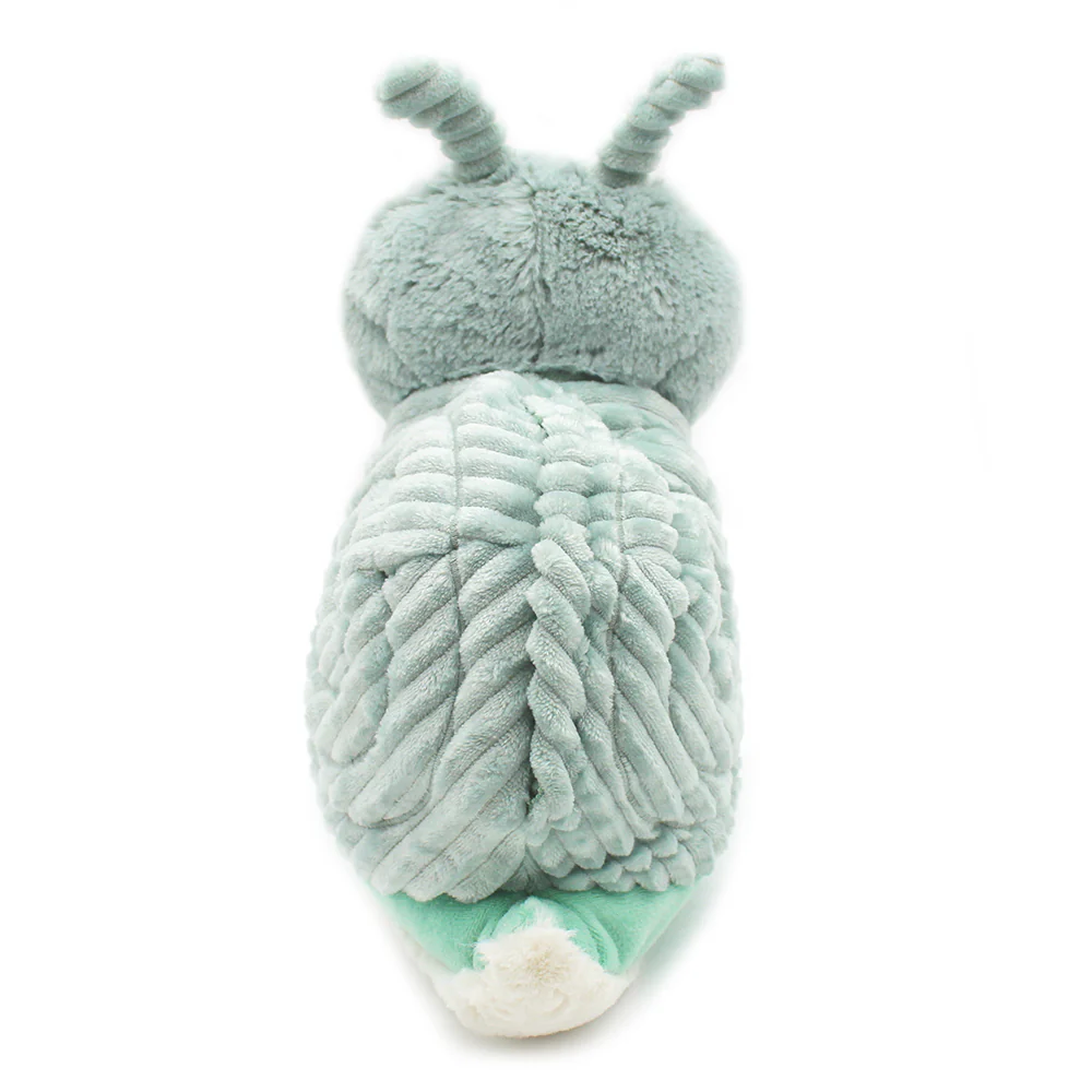 La peluche escargot Ptipotos de 25 cm couleur verte menthe est vendue avec son bébé caché dans sa coquille.