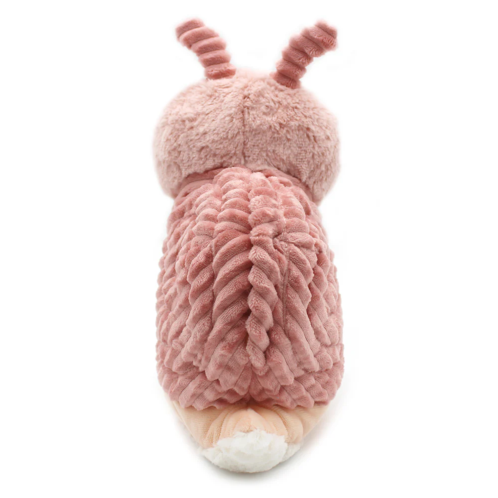 La peluche escargot Ptipotos de 25 cm couleur rose est vendue avec son bébé caché dans sa coquille.