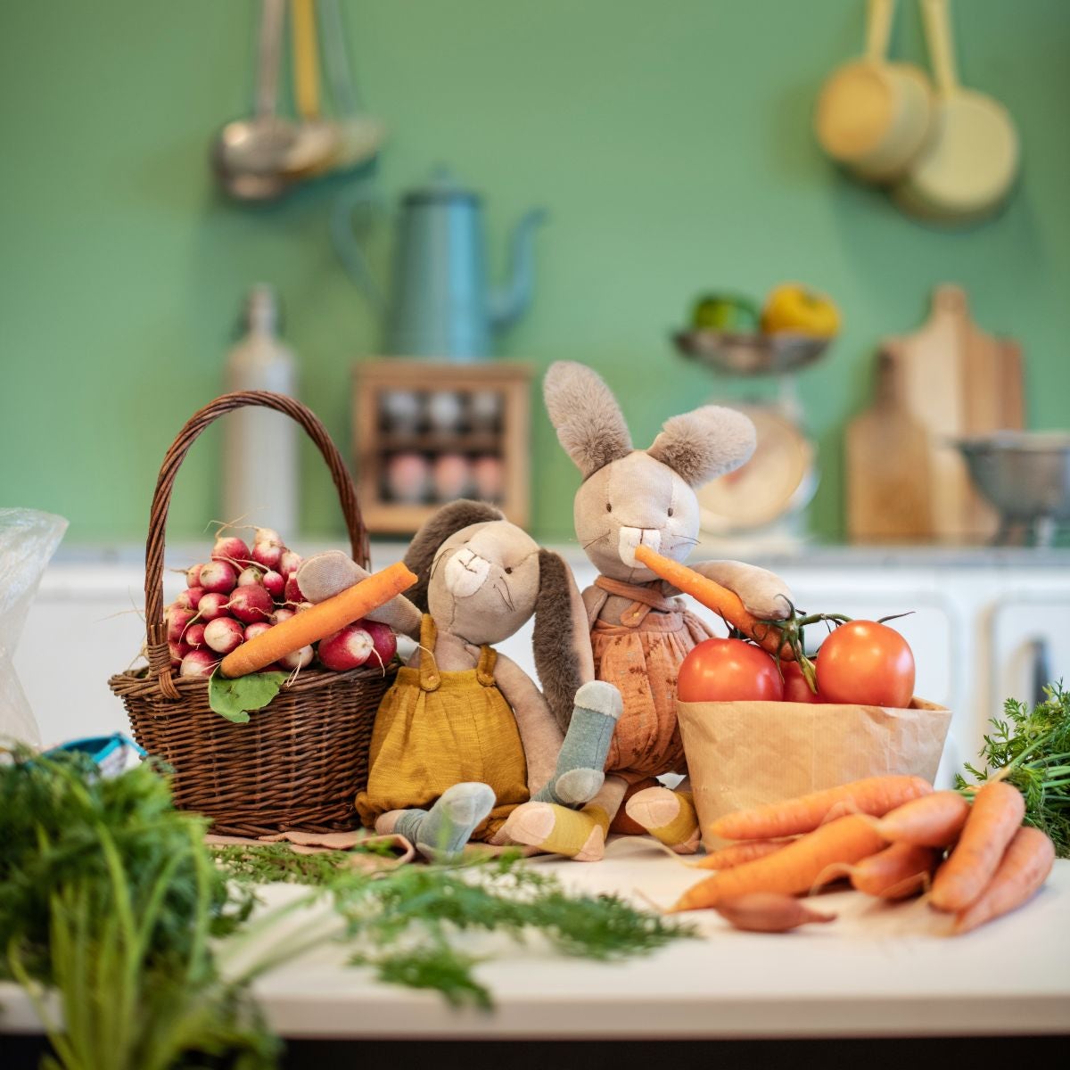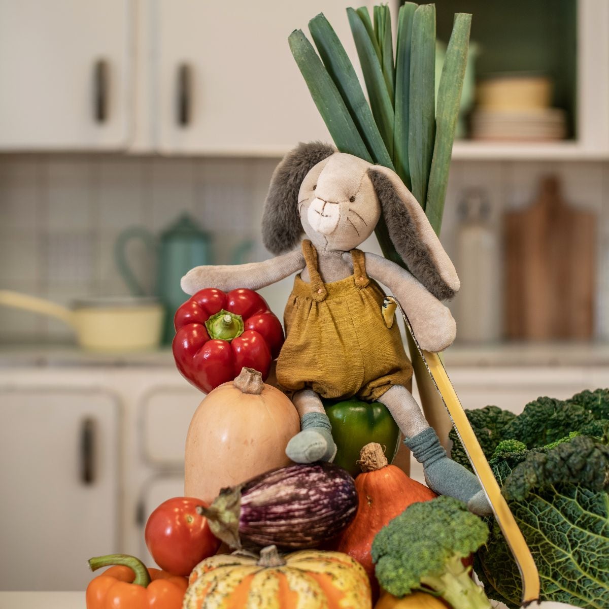 Avec sa frimousse à moustaches et ses grandes oreilles toutes douces, cet adorable lapin à la salopette ocre ne demande qu'à faire des câlins ! Compagnon de jeu la journée et doudou protecteur la nuit, il accompagnera bébé dans toutes ses aventures.