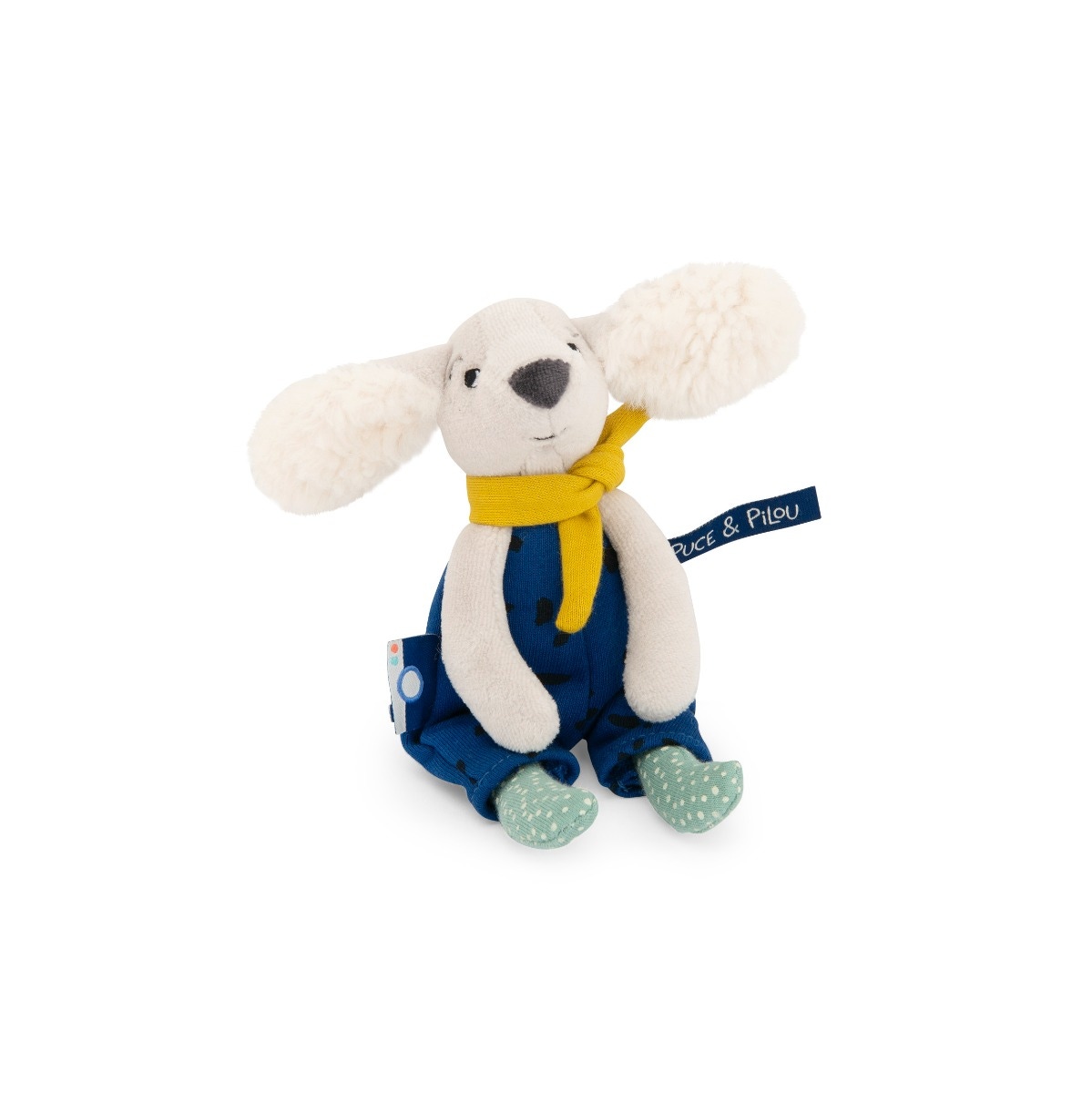 Pilou, le petit chien de la collection Puce & Pilou de Moulin Roty, est le compagnon idéal pour votre enfant. Petite peluche, vêtu de sa salopette tachetée, de ses chaussettes à pois et de son écharpe jaune, il est parfait pour des moments de douceur. Sa petite taille le rend pratique à emporter partout, pour que votre enfant ait toujours son ami à ses côtés.