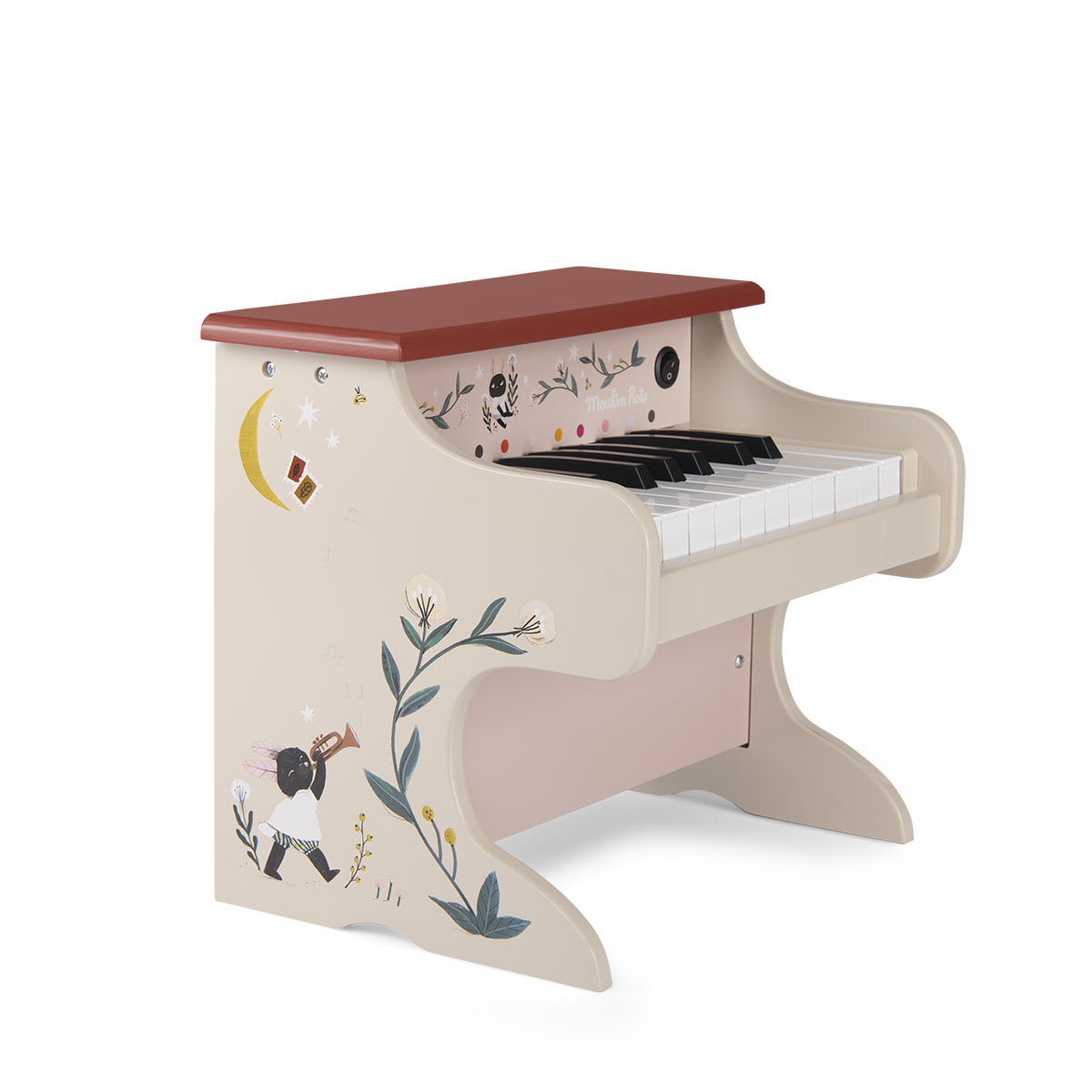 Piano électronique à 18 touches, décoré des illustrations poétiques de la collection Après la pluie. Contient 6 partitions sur lesquelles se trouvent des pastilles colorées pour guider l'enfant. Fonctionne avec piles (non incluses). 3 et +