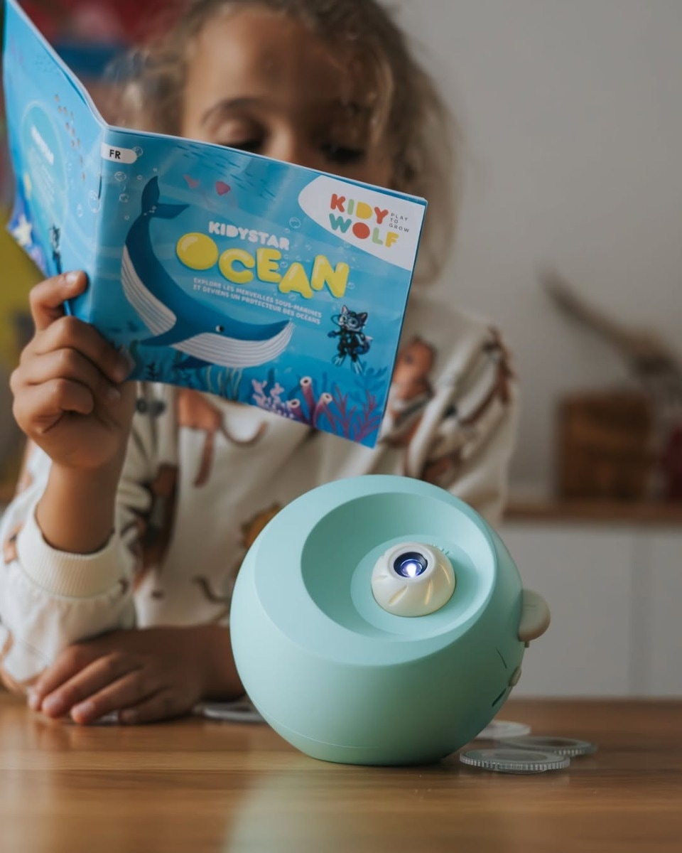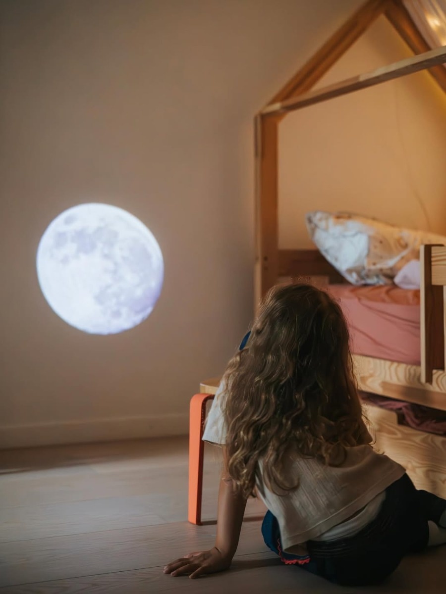KIDYSTAR est un planétarium - Transformez leur chambre en ciel étoilé scintillant pourdes nuits magiques et mémorables.Les détails précis de la projection créent une atmosphère à la fois apaisante et immersive. Grâce à sa connectivité Bluetooth, ils peuvent diffuser leur musique préférée pour une immersion totale. En bonus, un livre éducatif sur l'astronomie est fourni pour apprendre àidentifier les constellations et les planètes