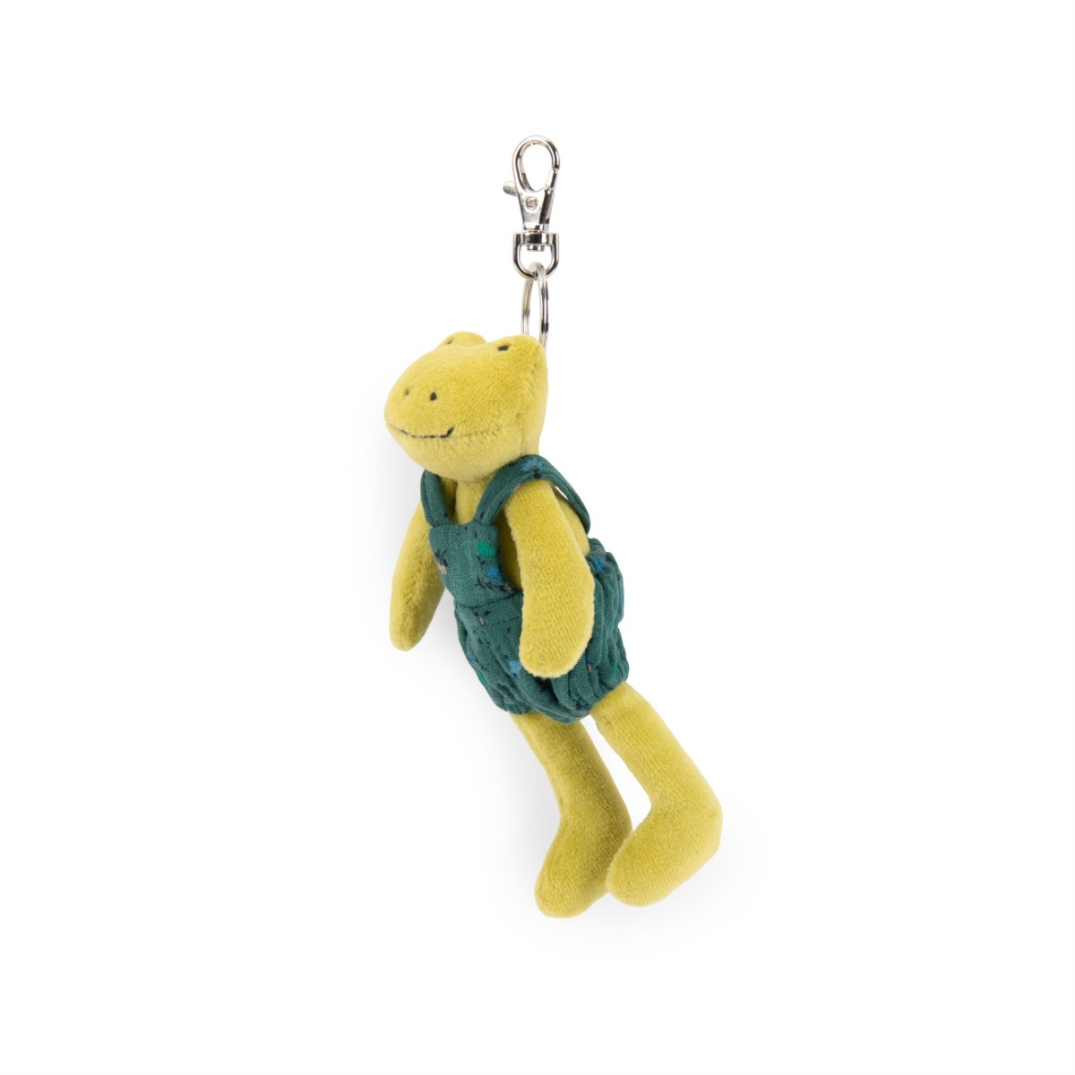 Porte-clé Perlette, la délicate grenouille, de 16 cm. Pomponnée dans son adorable salopette printanière, accrochez-la à vos clés, votre sac ou votre trousse, et laissez-là vous accompagner partout !