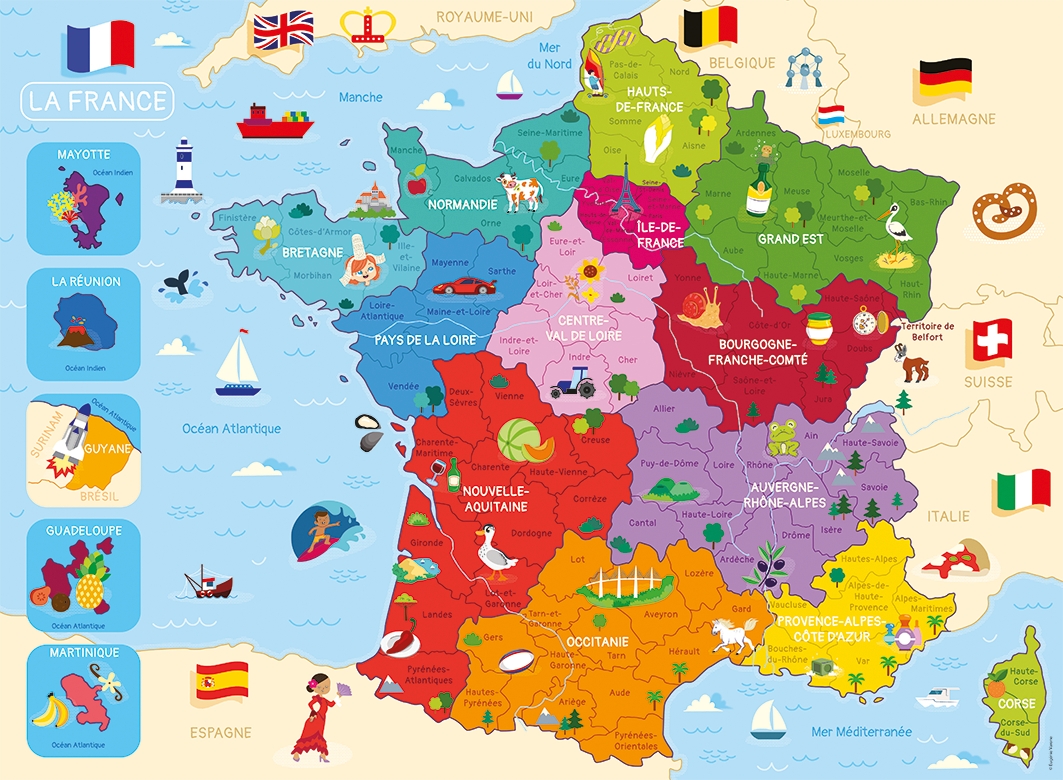 Idéal dès 8 ans, ce puzzle coloré et richement illustré permet à l’enfant de se repérer facilement grâce aux dessins thématiques : monuments, spécialités régionales, faune et culture locale... Chaque pièce est une découverte !