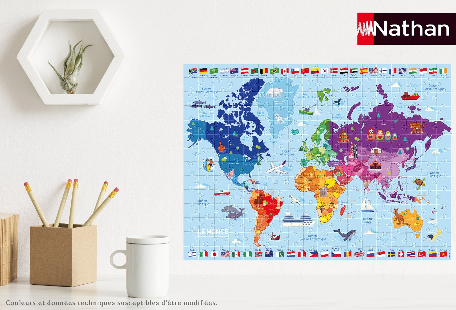 Offrez à votre enfant un véritable voyage autour du globe avec ce puzzle 250 pièces Carte du Monde signé Ravensburger. Idéal dès 8 ans, ce puzzle passionnant permet de découvrir les continents, les pays, les océans, ainsi que les animaux emblématiques de chaque région.