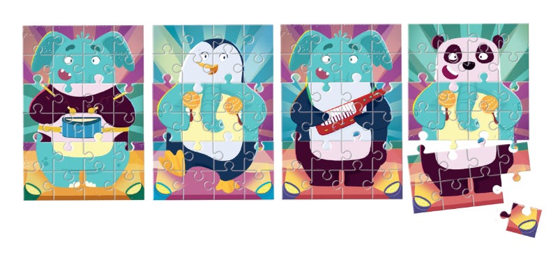 Ce coffret contient 3 puzzles de 24 pièces chacun pour les enfants dès 4 ans. En plus de l’activité puzzle traditionnelle, les puzzles Mix & Match peuvent se mélanger entre eux pour créer de nouvelles créatures rigolotes ! Tête de panda, corps d’éléphant et pattes de pingouin… les enfants peuvent imaginer des animaux insolites et amusants, en échangeant facilement les pièces !