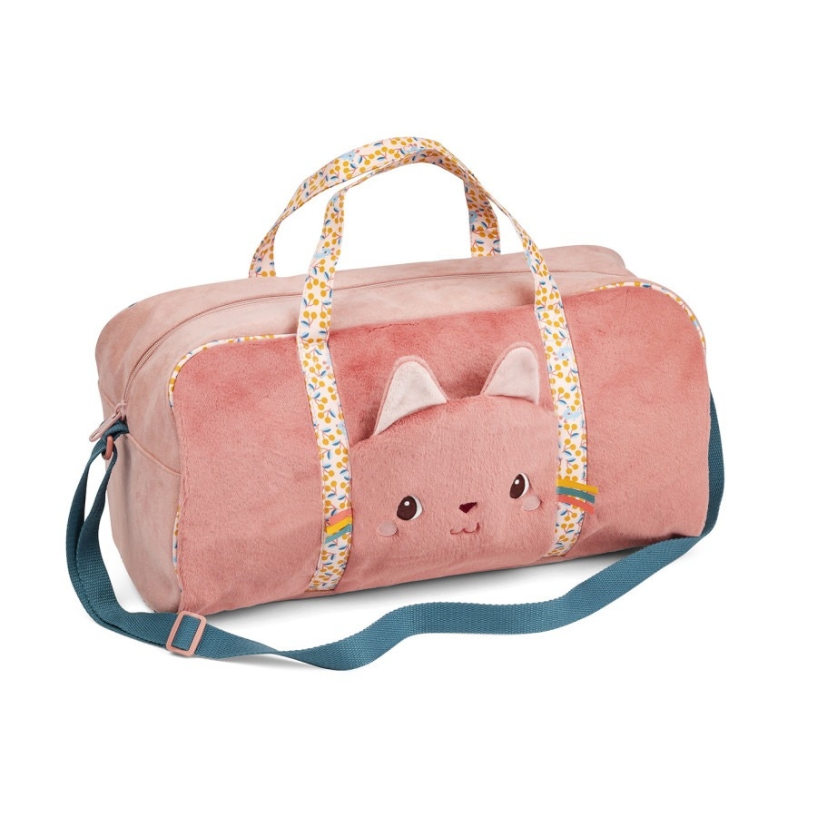 Le sac week-end Jeanne le chat de chez Lilliputiens est idéal pour les premières nuits chez papi et mamie ou pour le premier voyage scolaire. Avec ses deux anses et sa grande bandoulière réglable il se transporte facilement. Ce sac contient deux pochettes, une interne et une externe. Tout doux il est compatible et assorti avec la trousse de toilette Jeanne. Il peut également servir de sac à langer pour les plus petits.