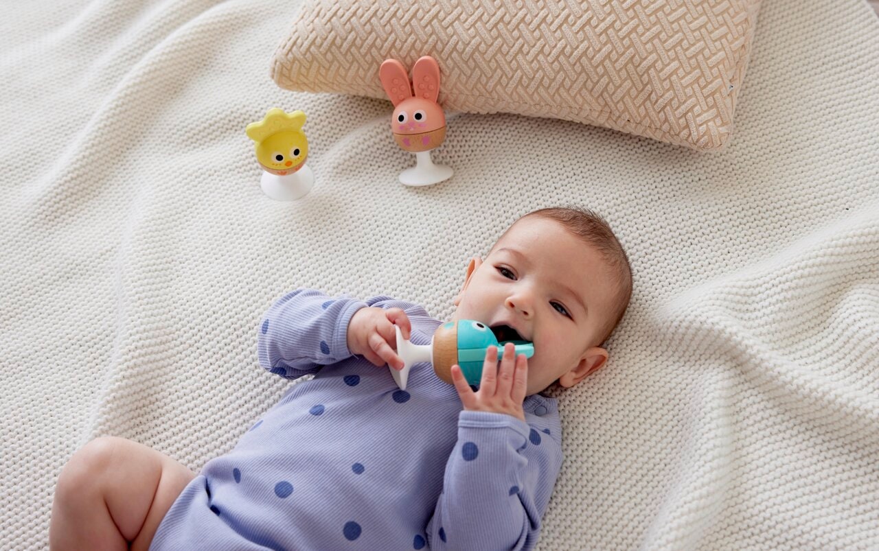 Les hochets sont colorés et ont des formes arrondies, ce qui les rend attrayants et faciles à saisir pour les petites mains. Chaque hochet émet un son différent lorsqu'il est secoué, ce qui stimule l'ouïe de bébé. Les hochets sont dotés de ventouses, ce qui permet de les fixer sur des surfaces planes comme la table à manger ou la chaise haute. Idéal pour offrir à Pâques ou pour un cadeau de naissance.