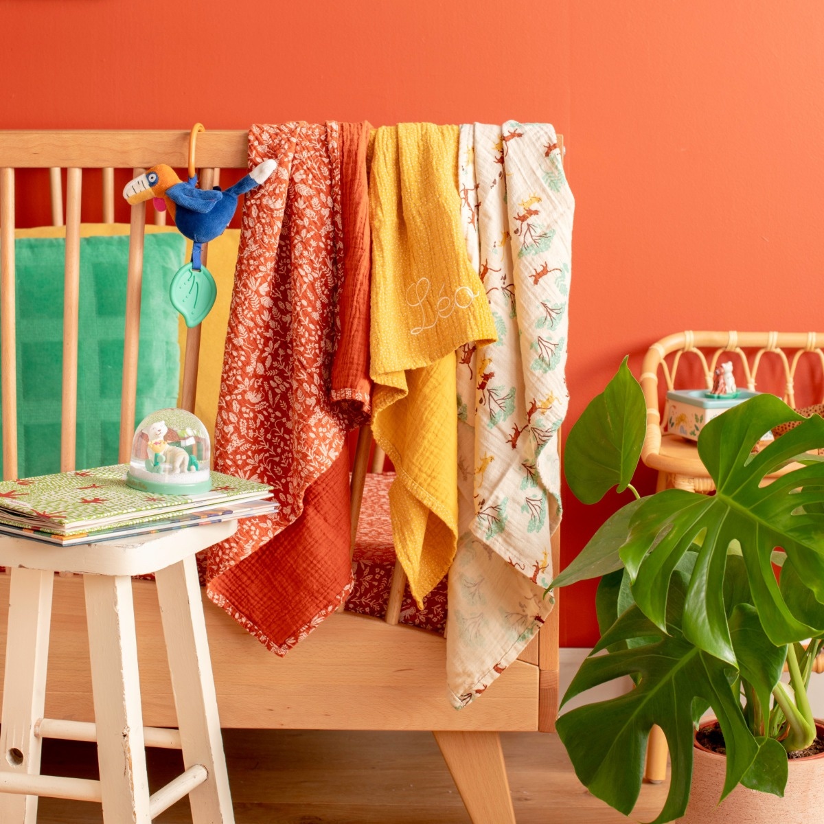 Ces langes souples et légers sont idéaux pour changer votre enfant, le couvrir lors des balades ou l’envelopper de douceur à tout moment. Le set comprend trois motifs délicats inspirés de la nature et des animaux : félins, feuillage et confettis, pour éveiller les sens de bébé. Chaque lange peut être personnalisé avec le prénom de votre enfant, apportant une touche unique et tendre. Fabriqués avec soin et certifiés OEKO-TEX® STANDARD 100 (CQ1337/1 IFTH), ils garantissent une qualité douce et sûre pour la peau sensible des tout-petits.