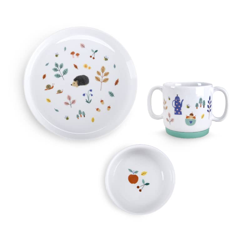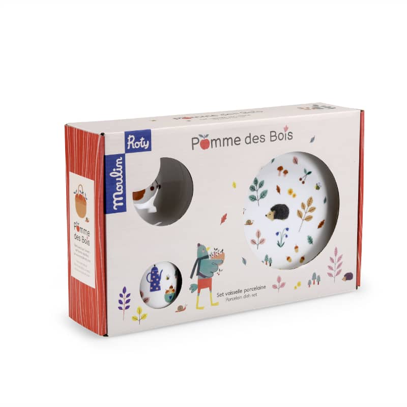 Set vaisselle bébé porcelaine Pomme des bois Moulin Roty