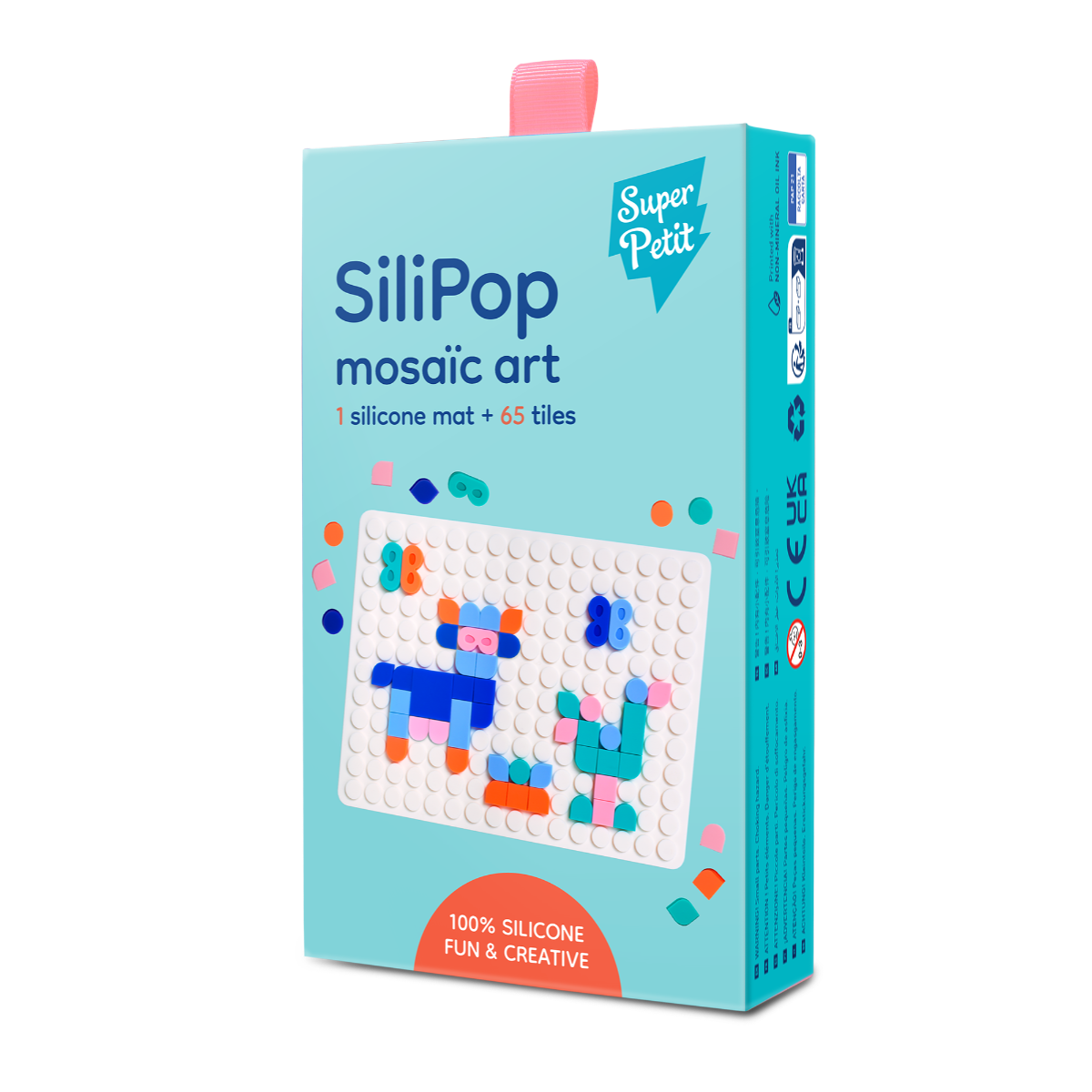 Crée, recrée, et transforme tes mosaïques à l’infini avec Silipop mosaïques à clipser blanc de chez Superpetit ! Dès 3 ans, joue avec les formes rigolotes et les couleurs toutes douces : suis les modèles ou invente les tiens ! Compact et léger, Silipop s’emporte partout : au restaurant, dans le train, chez des amis ou en vacances. Son format de poche et son étui zippé en font l’allié de toutes les sorties. Stimule la motricité fine, la concentration et le sens de l’observation tout en s’amusant. Des pièces douces au toucher, souples et agréables à manipuler, pour une expérience ludique et stimulante. Un jeu fun et relaxant, qui éloigne les enfants des écrans pour laisser place à l’imagination ! Membre de 1% for the Planet, nous reversons 1% de toutes nos ventes à des associations engagées dans la défense de l’environnement. MARQUE FRANÇAISE : Créé en 2015 par 2 sœurs, SuperPetit s’inspire de nos enfants pour développer des produits innovants et durables. Ce jeu éducatif créatif de mosaïque comporte 1 mini set en silicone, 65 pièces à clipser à l’infini dans son étui zippé, ainsi qu’une fiche de modèles à reproduire. Ce jeu tactile est idéal pour stimuler la motricité fine et la créativité des enfants dès 3 ans. Nomade et pratique, le Silipop se transporte facilement dans un sac ou une valise grâce à son format compact et léger. Que ce soit en vacances, au restaurant, dans le train, en voiture, ou à la maison, ce jeu sans écran devient l'allié parfait pour divertir les enfants tout en favorisant leur réflexion, leur logique, et leur imagination. Une activité fun et relaxante qui permet de créer et recréer sans fin ! Sans colle, sans limite : les pièces se fixent simplement sur le set en silicone et peuvent être réorganisées à l'infini, offrant ainsi une expérience réutilisable et durable. Les enfants pourront reproduire des modèles ou laisser libre cours à leur imagination avec les formes rigolotes et les couleurs douces des pièces. Ce jeu réutilisable stimule le sens du toucher et l'observation tout en étant pratique et éducatif. Un cadeau idéal pour un anniversaire, ou pour partir en vacances sans écran, tout en offrant une activité créative qui occupe et éveille les sens des plus jeunes.