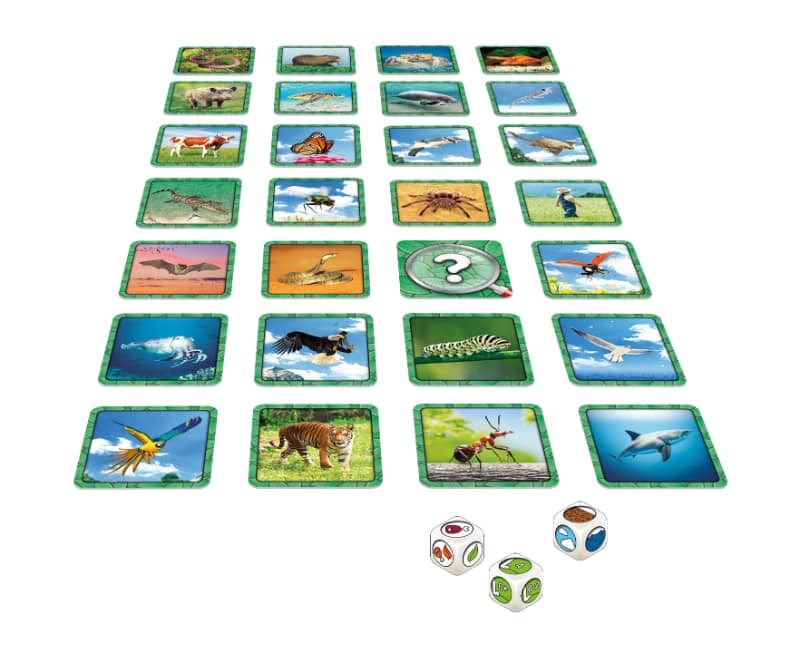 Puis, le joueur suivant dans le sens horaire prend les trois dés et un nouveau tour commence. Un seul animal combine exactement les trois critères d’un tirage, il faut donc être le plus rapide à poser la main sur cette tuile. TUILE SPÉCIALE «?»
