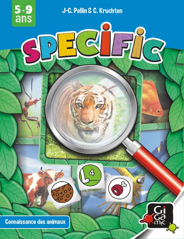 Le jeu malin comme un singe ! Connaissez-vous un animal carnivore qui a 4 pattes et qui vit sur terre ? Lancez les dés et soyez le premier à désigner l’animal qui recoupe les trois caractéristiques annoncées : environnement, alimentation et nombre de pattes. Des variantes rendent le jeu accessible et adapté à toutes les tranches d’âge. Specific est un jeu qui ne se contente pas d’être pédagogique. Il est surtout super drôle et dynamique !