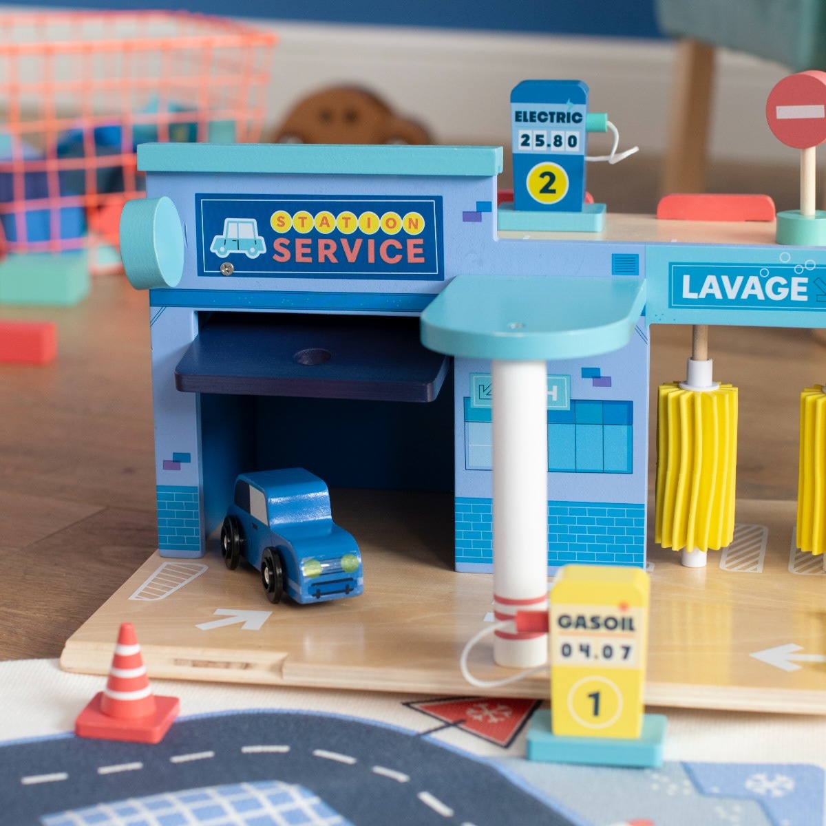 Faire le plein, laver les voitures, réparer les pannes, les petits s'inventeront d'incroyables histoires avec la station-service en bois. Cette station au look rétro comprend 1 voiture, 1 rampe, 2 pompes, 1 box...pour des heures de jeu en perspective !