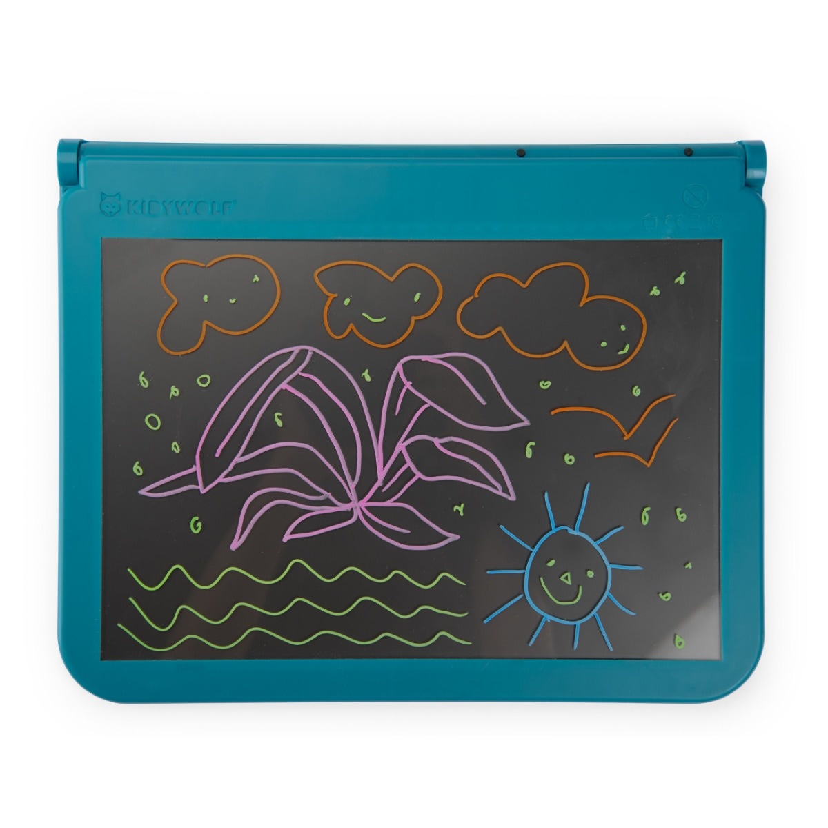 L’autre face de la tablette offre une surface adaptée aux crayons feutres fluos, pour des créations éclatantes effet néons qui brillent à la lumière.