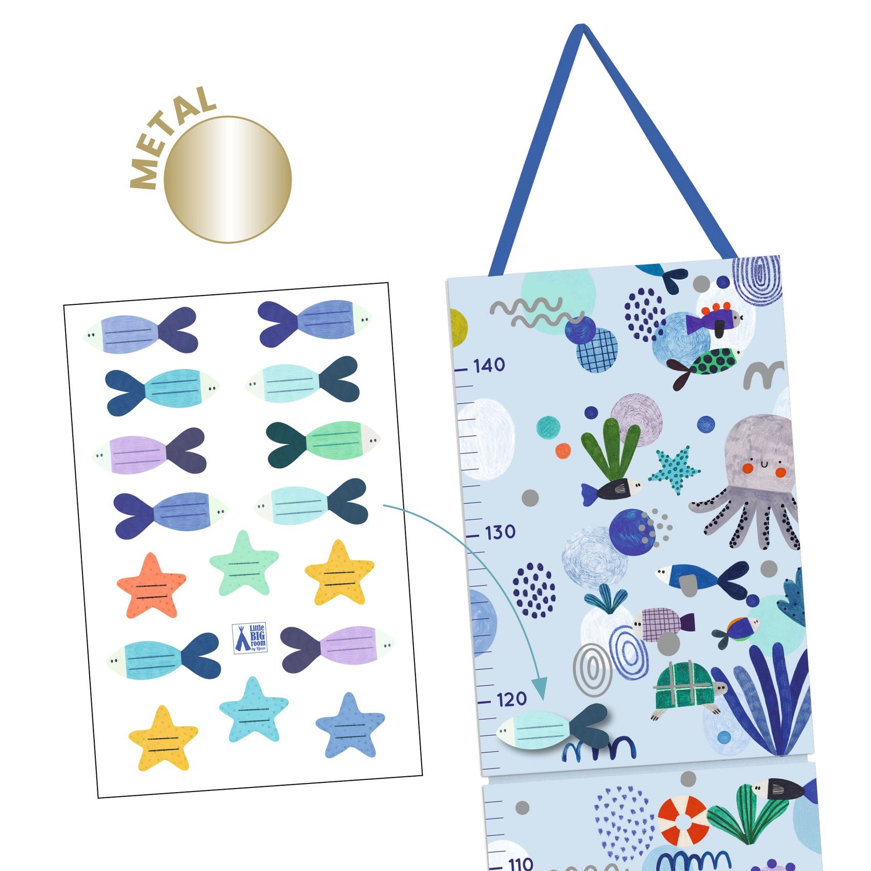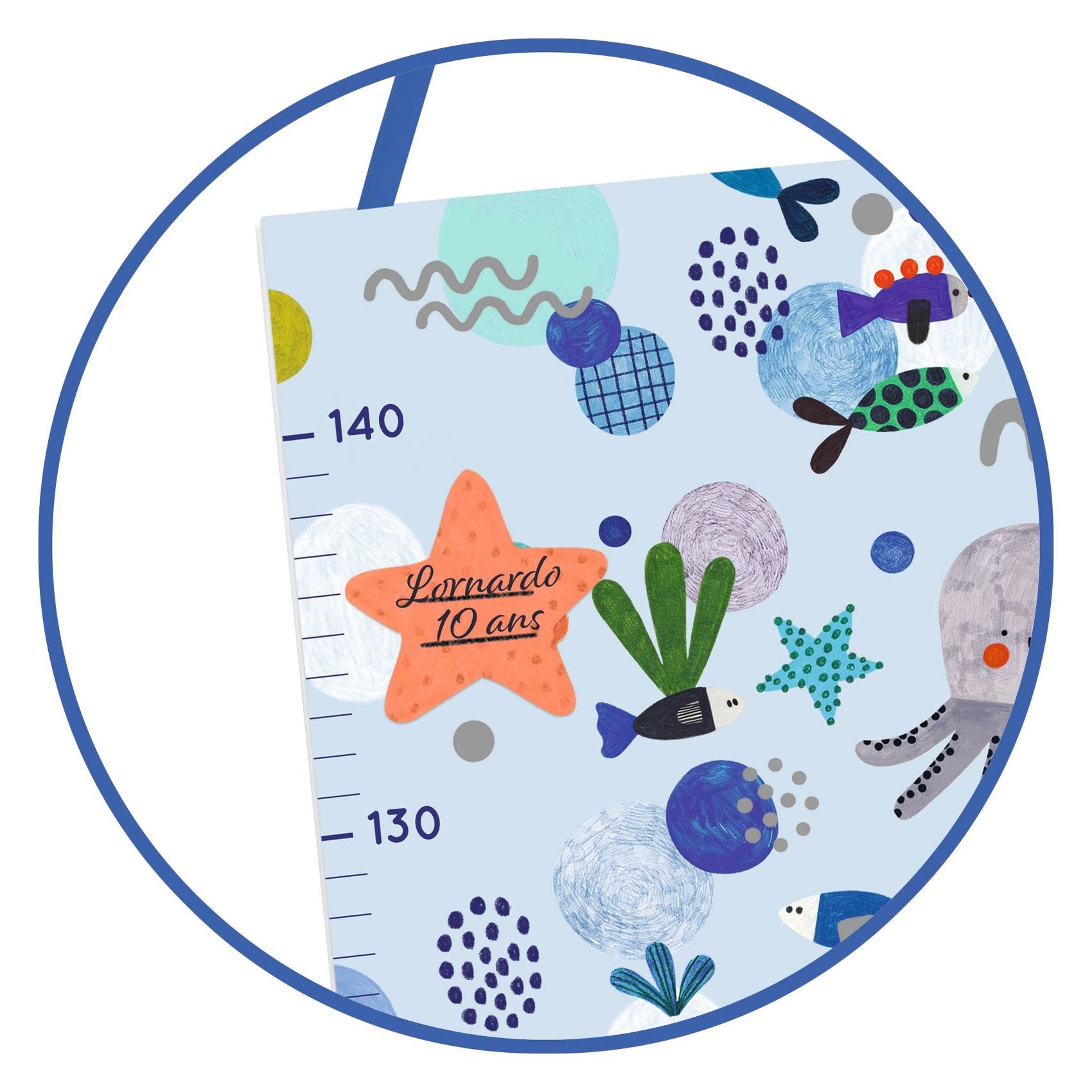 Une grande toise murale avec de nombreux stickers repositionnables sur le thème de la mer. Un bel objet de décoration idéal pour mesurer les enfants au fil du temps (jusqu’à 1,40 m). Et lorsque l'enfant est grand, on la range dans sa jolie boite pour un tendre souvenir.