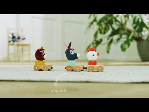 Vroum, vroum ! Paulette, Ignace et Rosalie montent chacun dans leur petite auto. Trouvez la voiture de chaque personnage en associant les formes et les couleurs et reliez les 3 autos les unes aux autres avec les aimants pour créer un beau petit train. Association de formes et de couleurs.