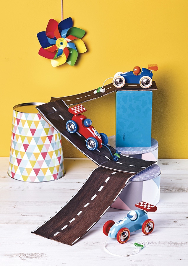 Voiture de course à trainer turquoise et rouge Vilac. Jouet à traîner "Voiture de course turquoise et rouge" en bois, fabriqué en France par Vilac.