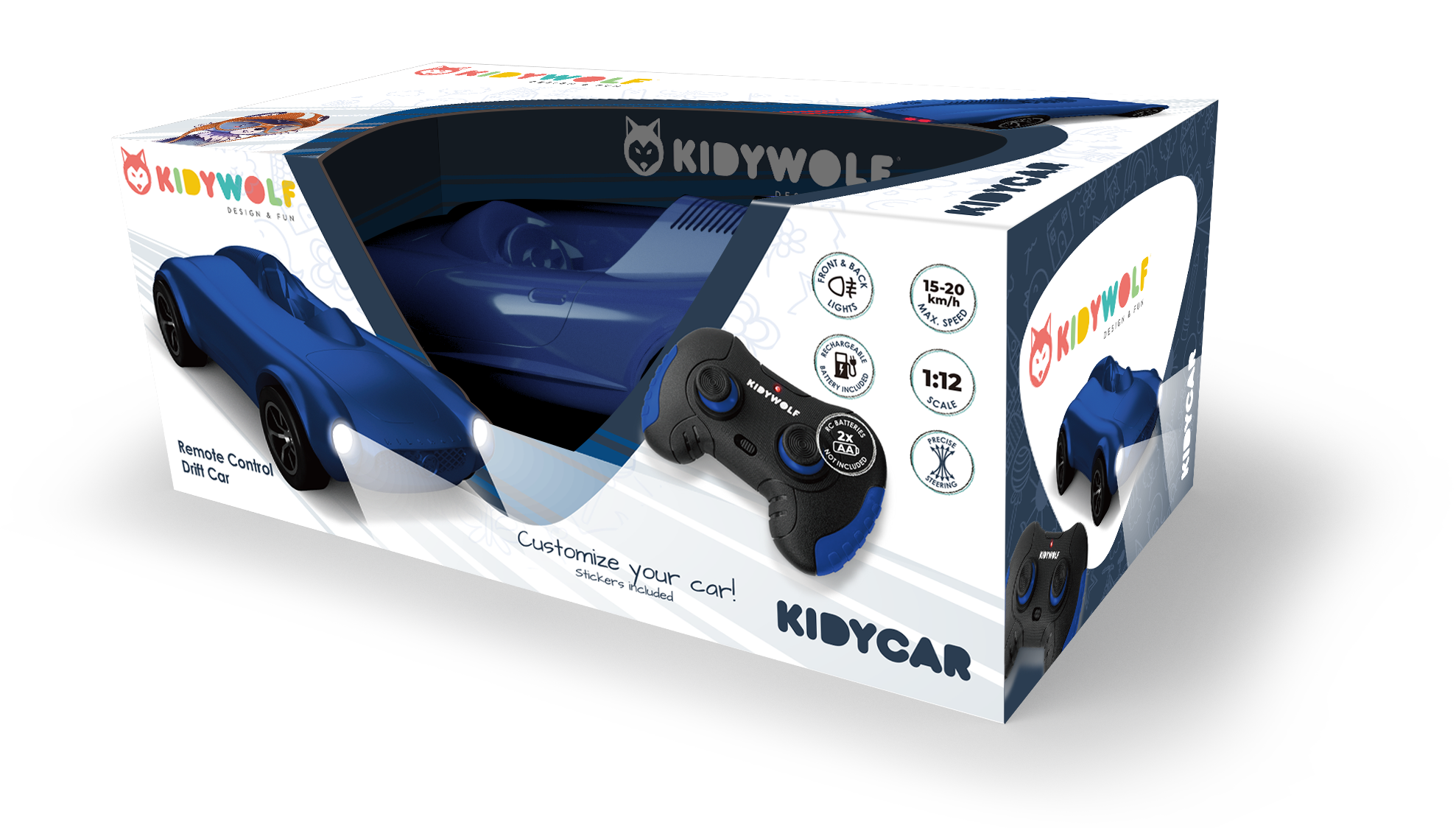 Voiture télécommandée bleue enfant Kidywolf
